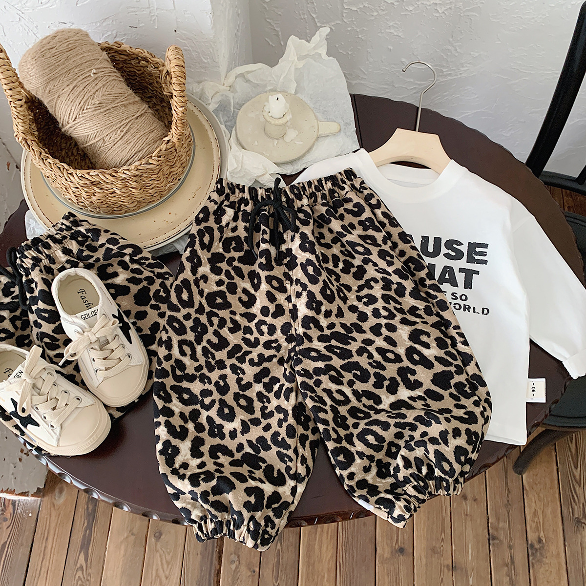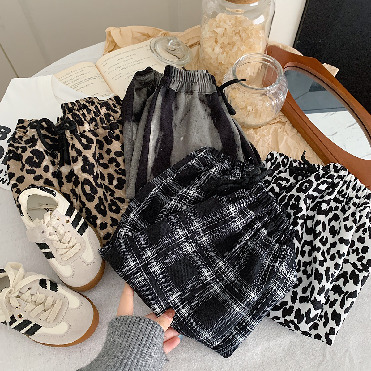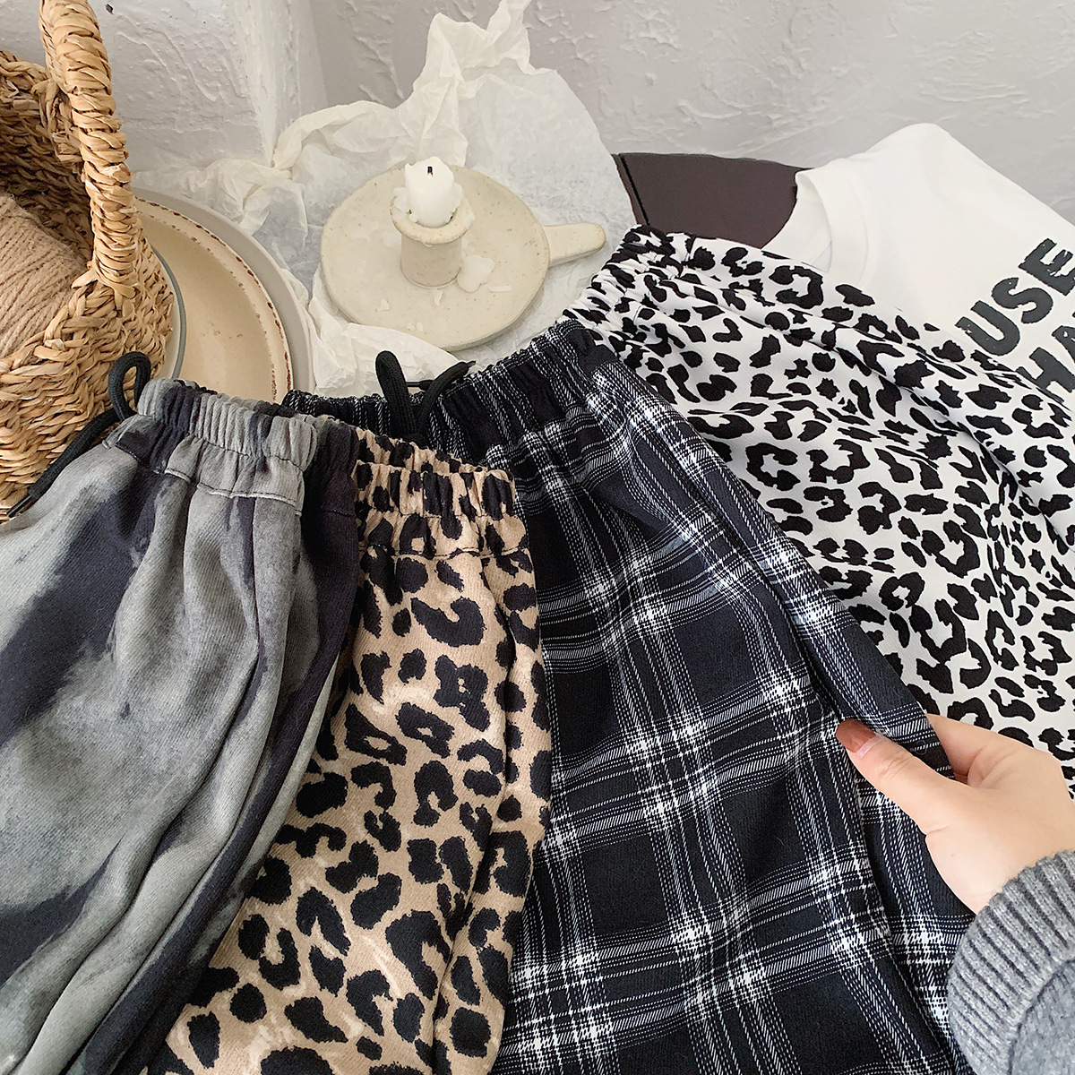 봄 2024 소년 소녀 중국 스타일 올 매치 바지 캐주얼 체크 무늬 한국 스타일 레오파드 무늬 트렌디 한 스포츠 트렌디 한 멋진 바지스토어 가기