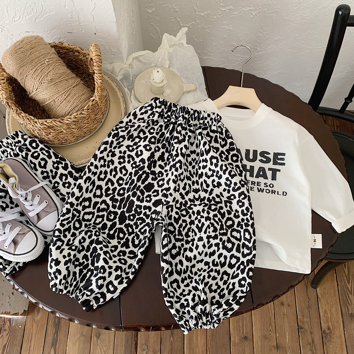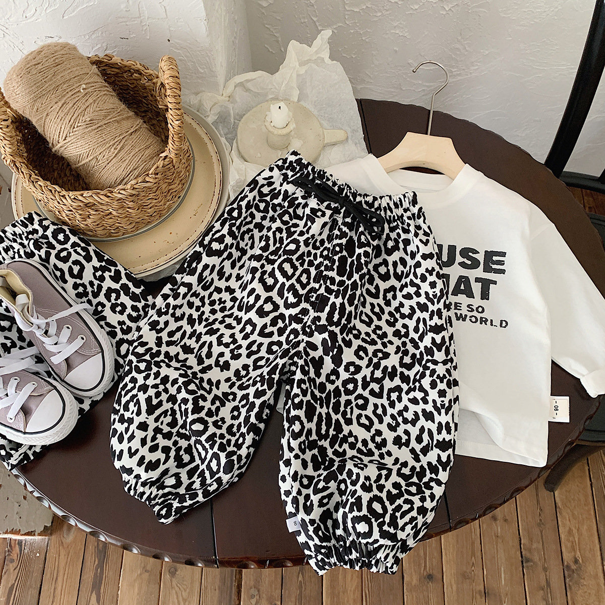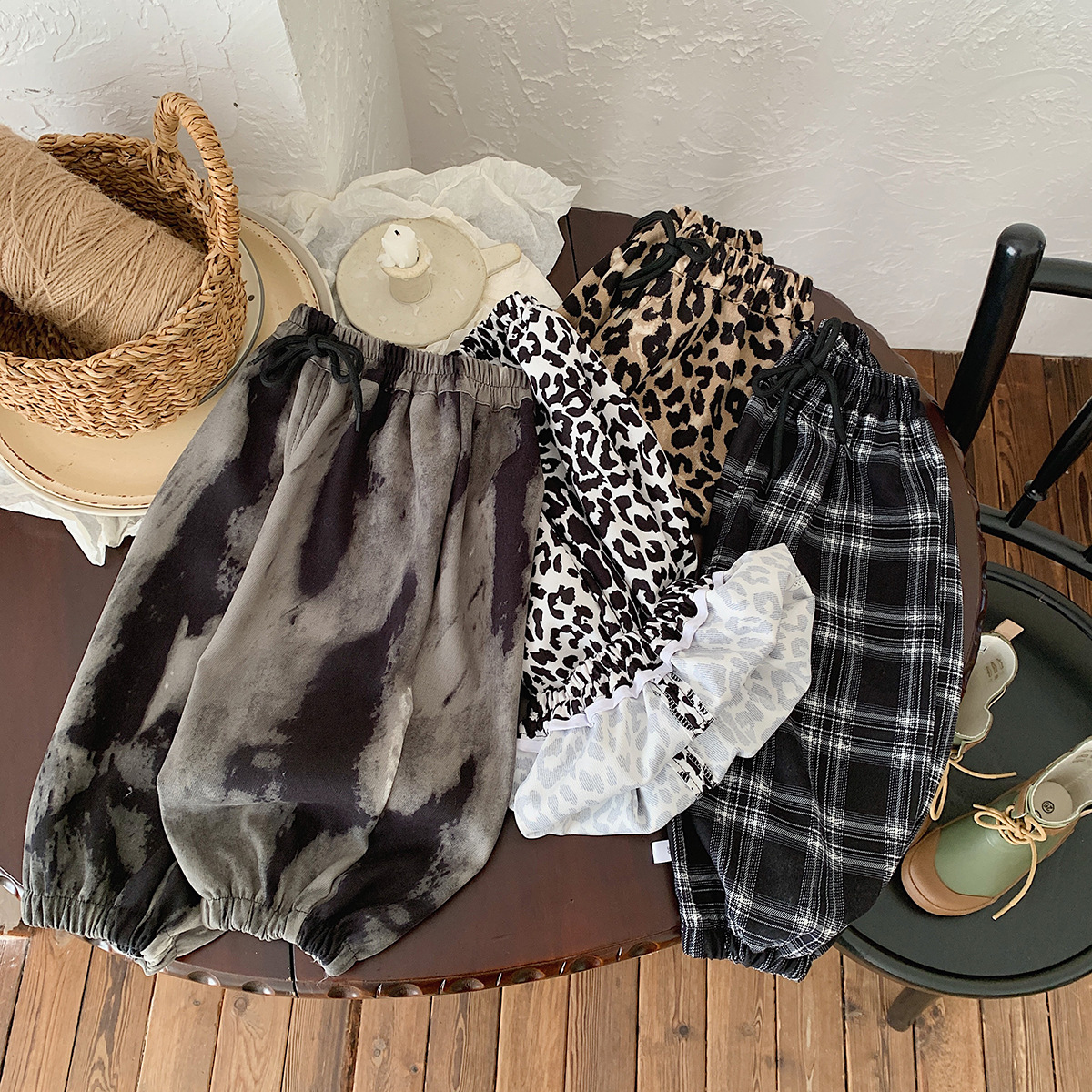 봄 2024 소년 소녀 중국 스타일 올 매치 바지 캐주얼 체크 무늬 한국 스타일 레오파드 무늬 트렌디 한 스포츠 트렌디 한 멋진 바지스토어 가기