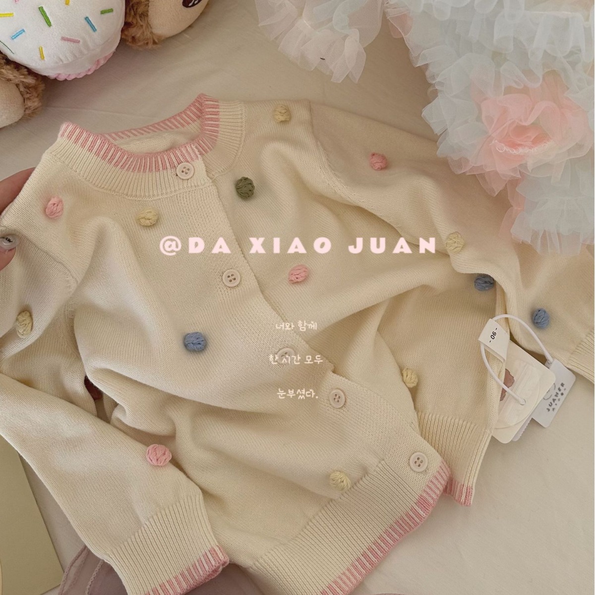 사이즈 롤 24 봄과 가을 단색 어린이 니트 카디건 코트 스트라이프 탑 남성과 여성 의류 서양식 원피스 배달스토어 가기