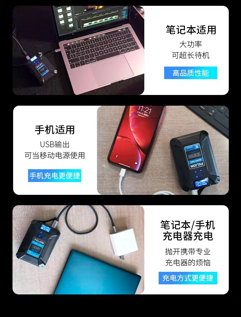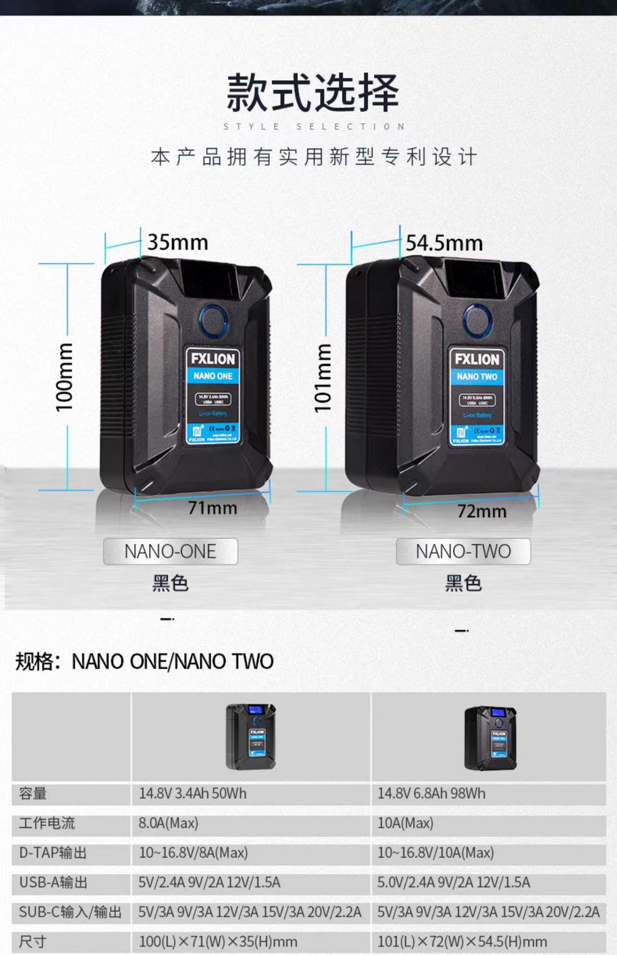 방향 Huaxin NANO 1 NANO 2 소형 서브 배터리 카메라 무선 충전 V 포트 배터리