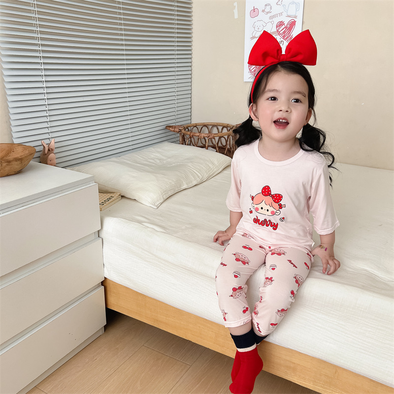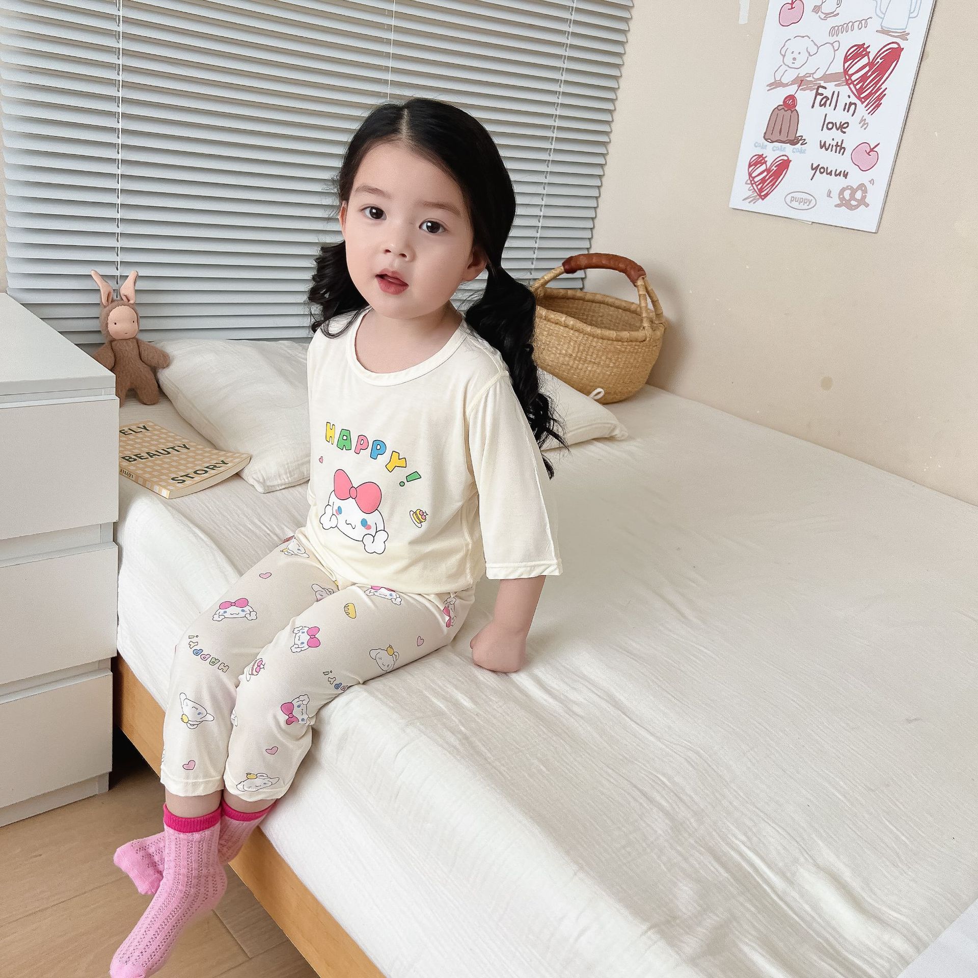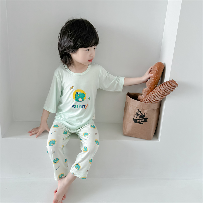Tong Beijia 50 Youkosi 어린이 잠옷 7 점 소매 9 점 바지 세트 봄 클래스 A 소년 소녀를위한 홈 옷스토어 가기