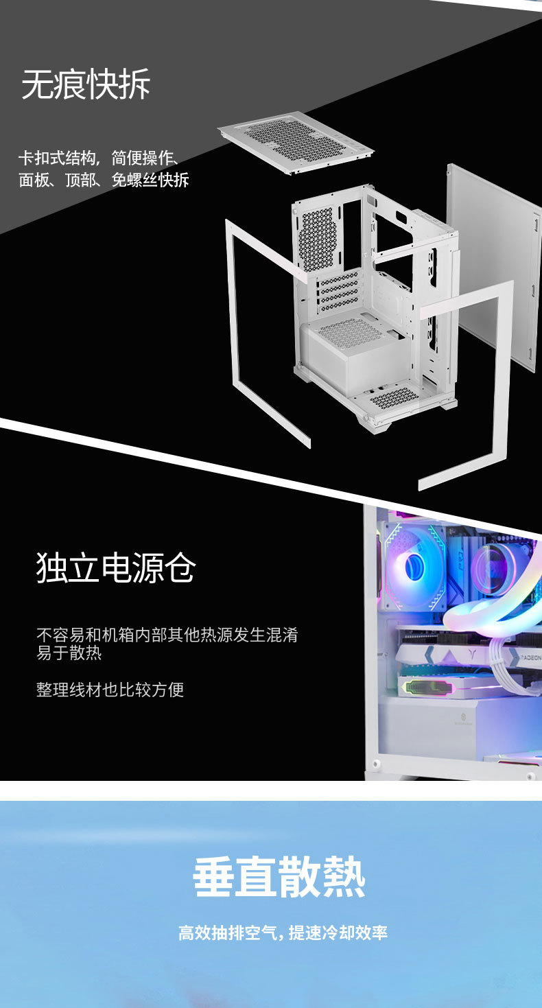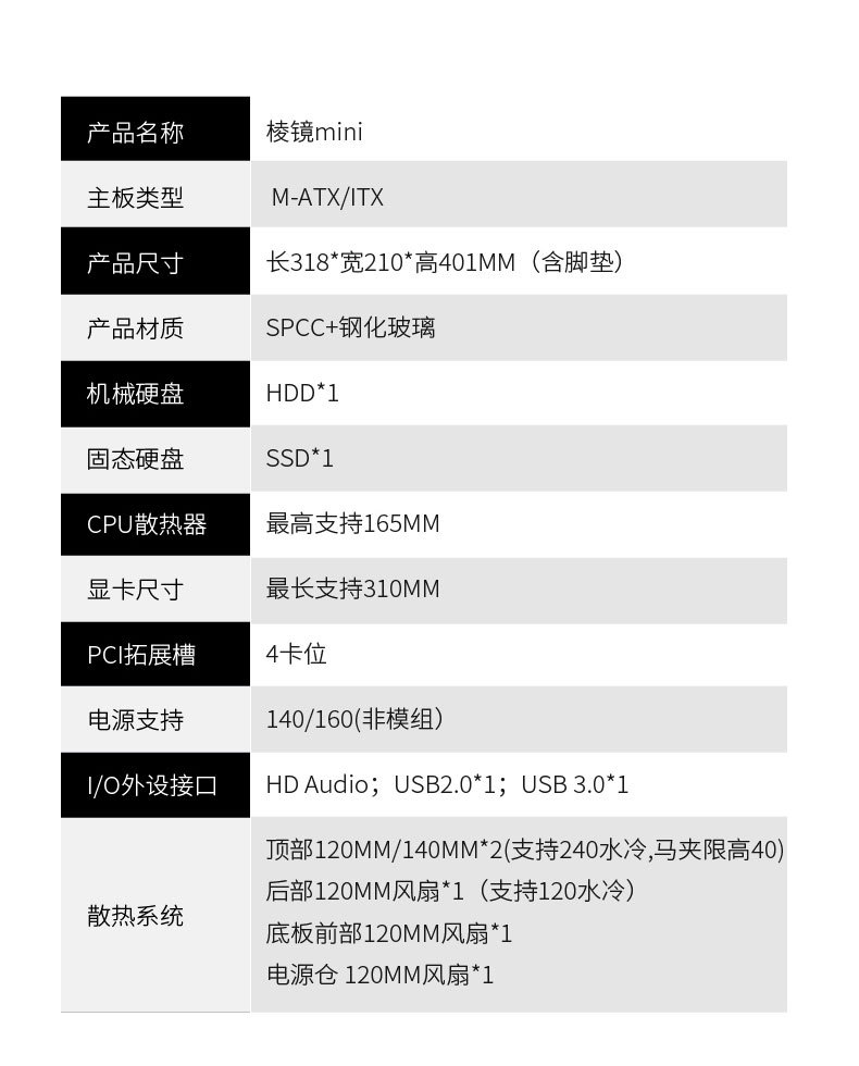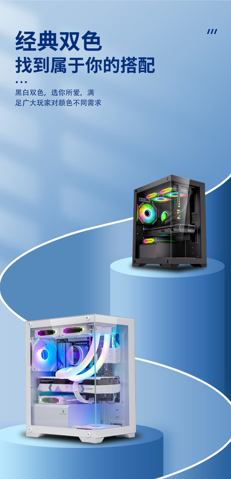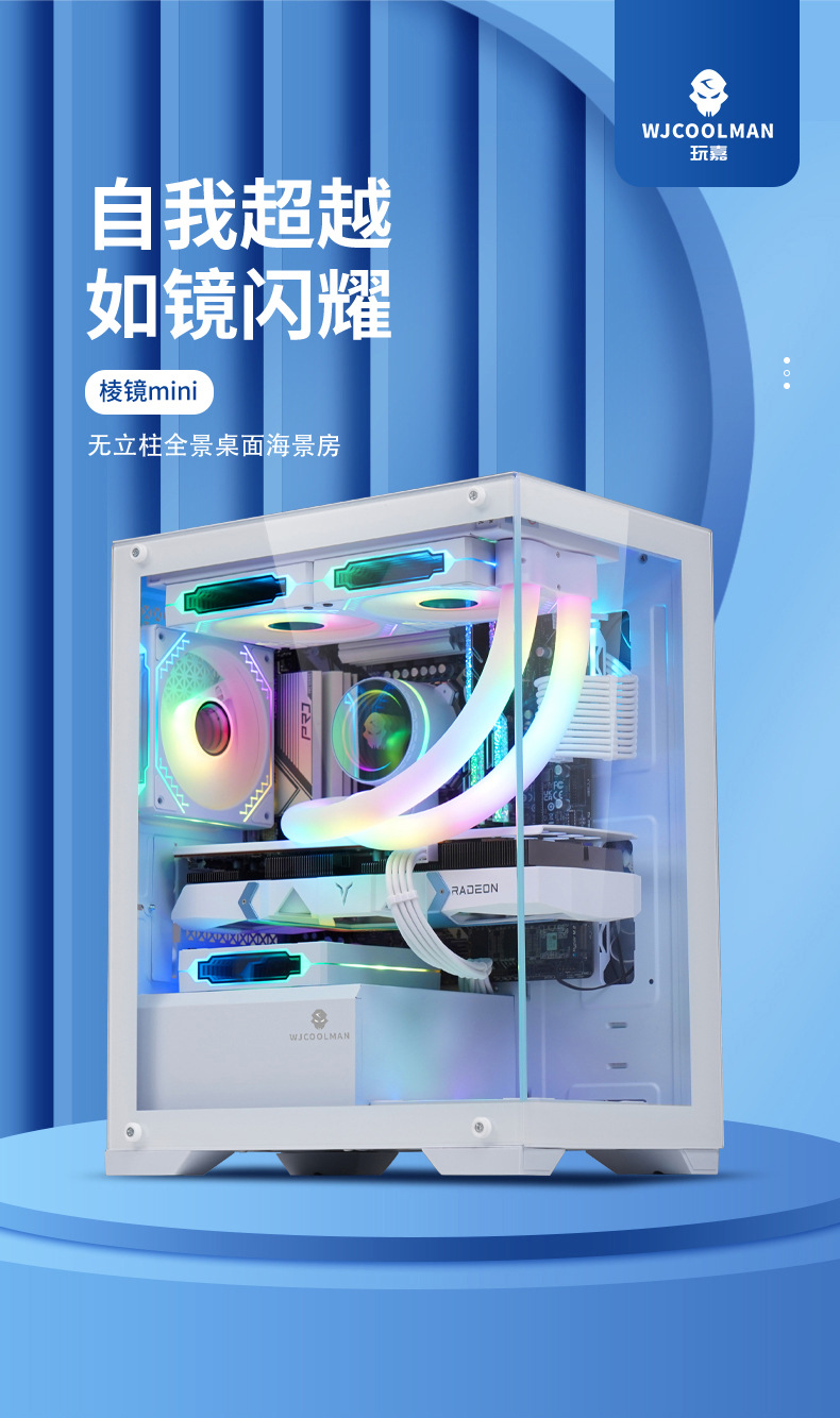 棱镜MINI全景玻璃无立柱台式机箱垂直散热桌面PC机箱