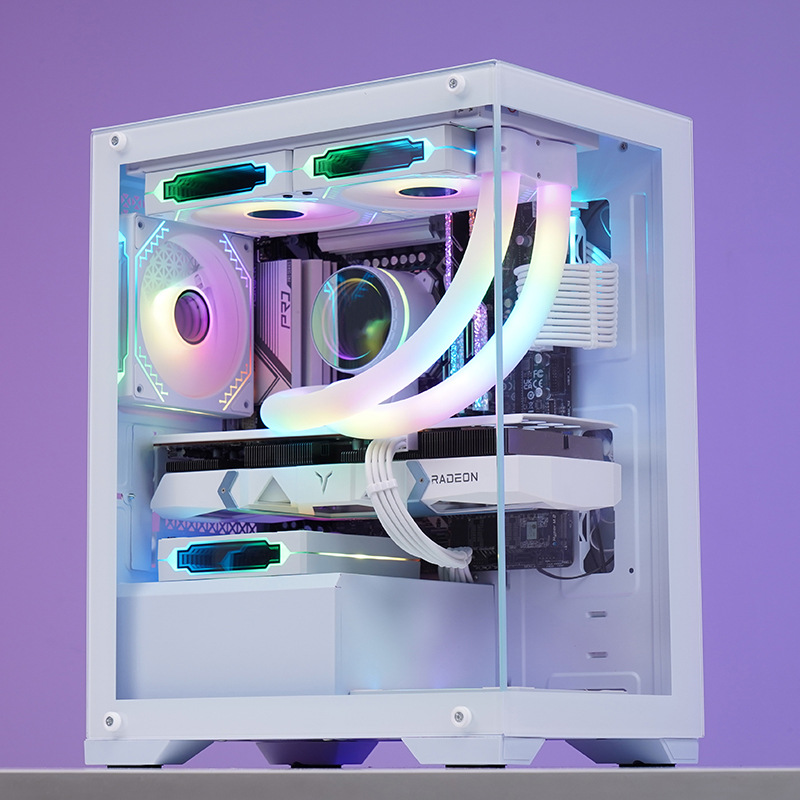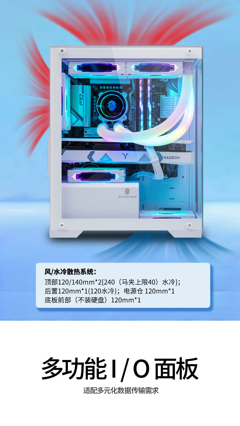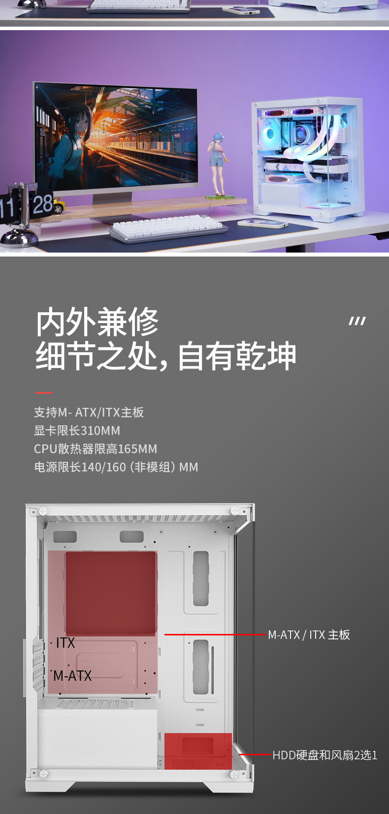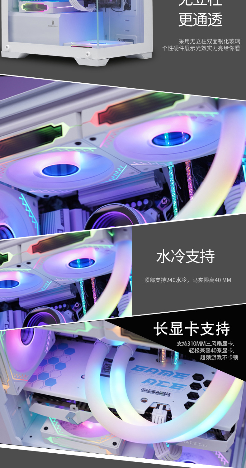 棱镜MINI全景玻璃无立柱台式机箱垂直散热桌面PC机箱