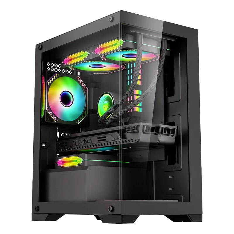 국경 간 프리즘 미니 데스크탑 컴퓨터 섀시 시뷰 룸 사이드 투명 게임 240 수냉식 섀시 인터넷 카페 섀시