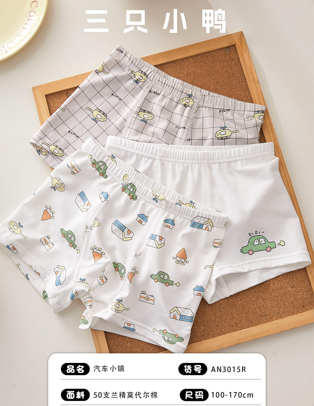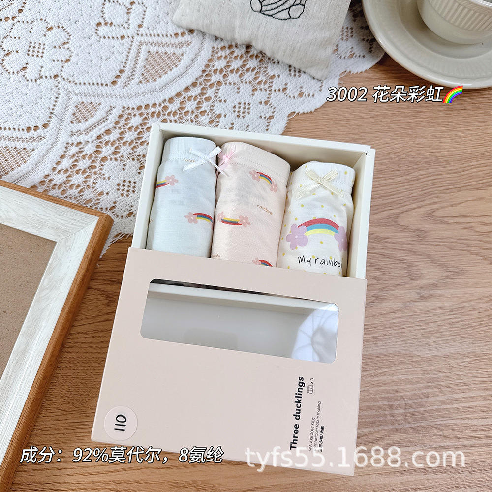 掌柜说:三只小鸭薄款儿童平角内裤男女童卡通印花莫代尔四角短裤盒装宝宝内裤