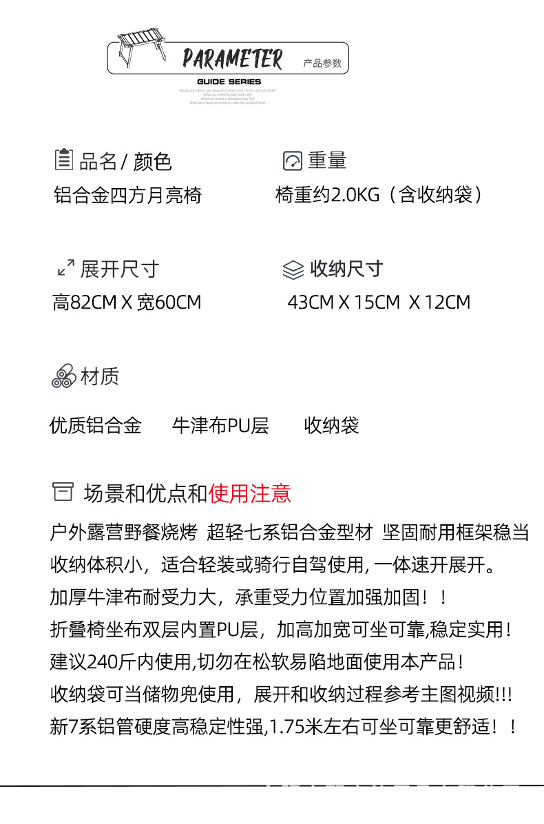 불린 가이드 시리즈 야외 캠핑 접이식 의자 울트라 라이트 의자 높은 등받이 강화 캠핑 의자 레저 의자
