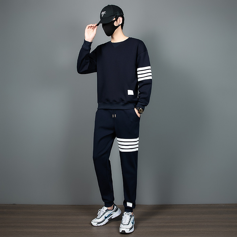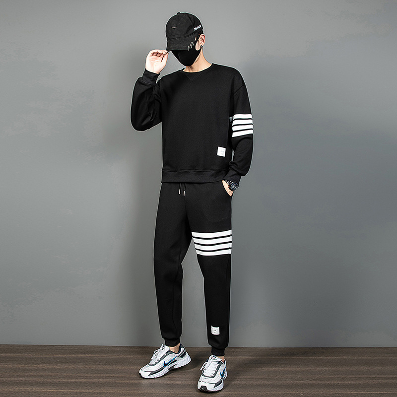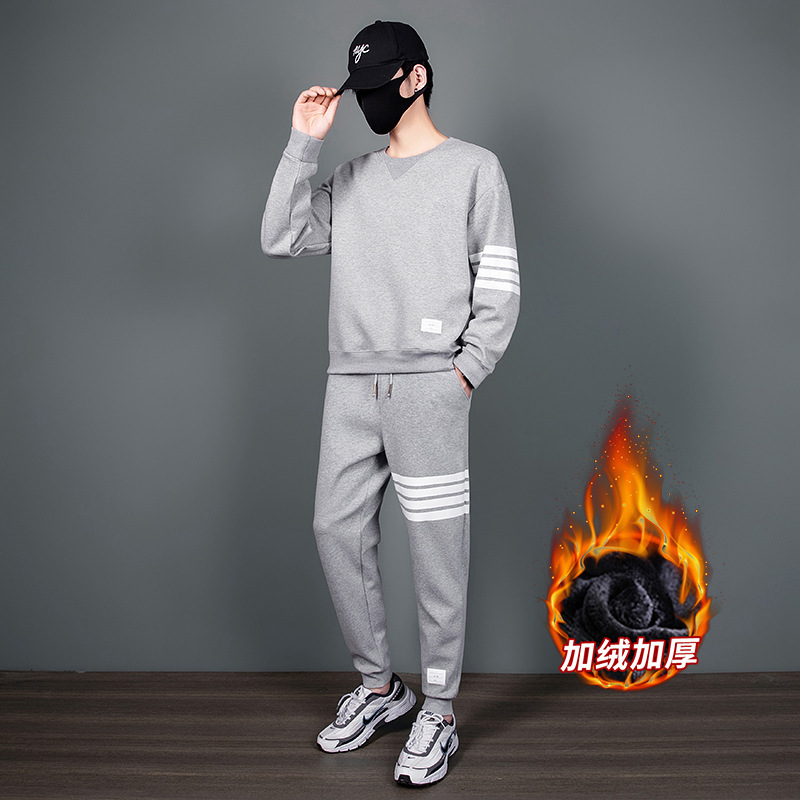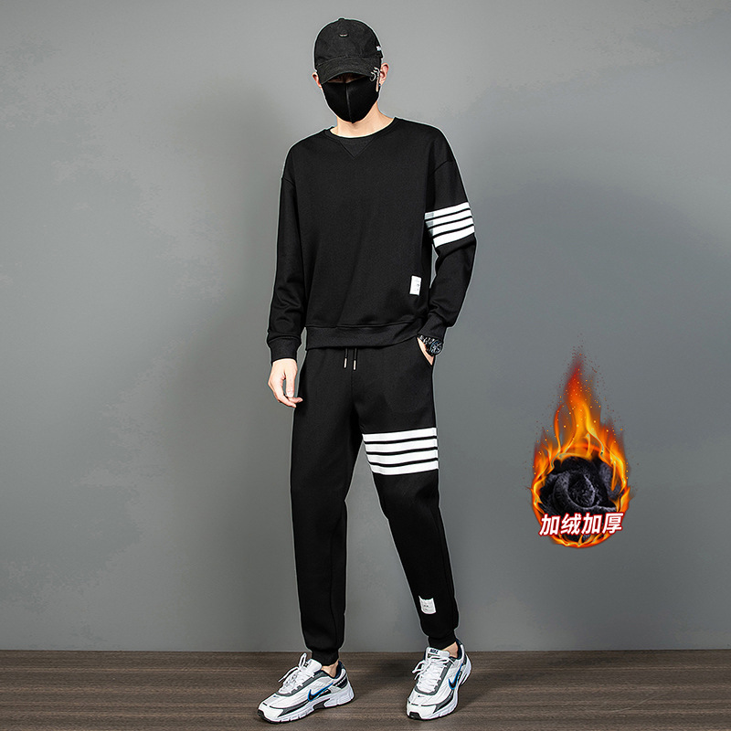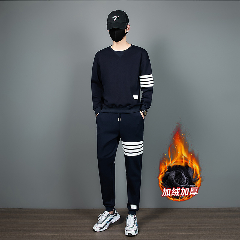스포츠 세트 남자 청소년 4 바 남자 캐주얼 바지 투피스 코튼 스트레치 기모 긴 소매 세트스토어 가기