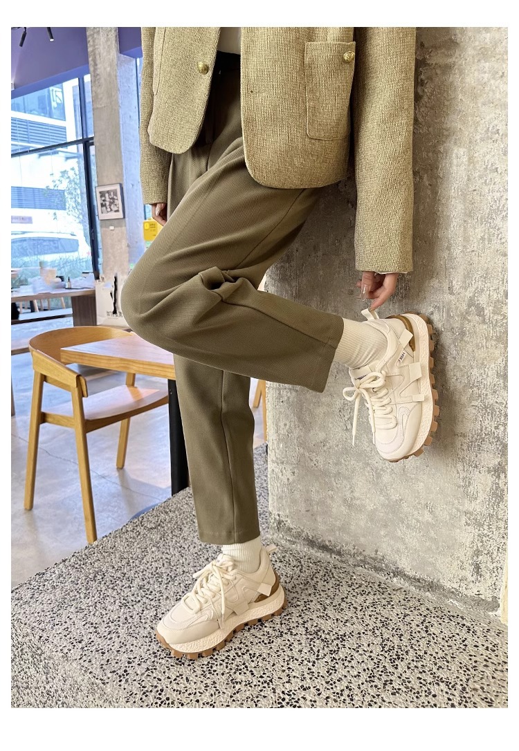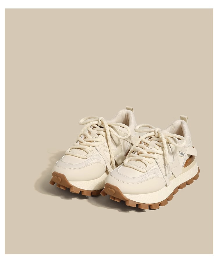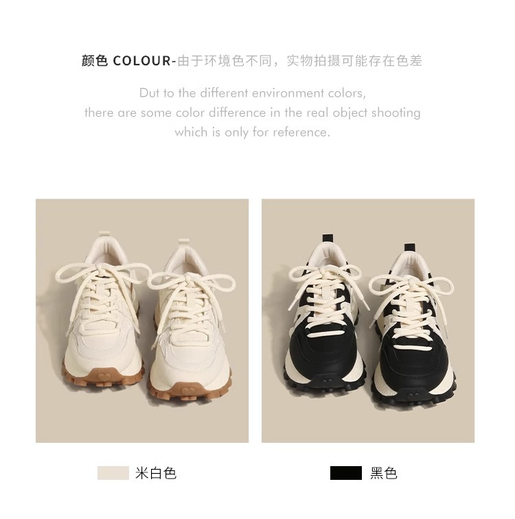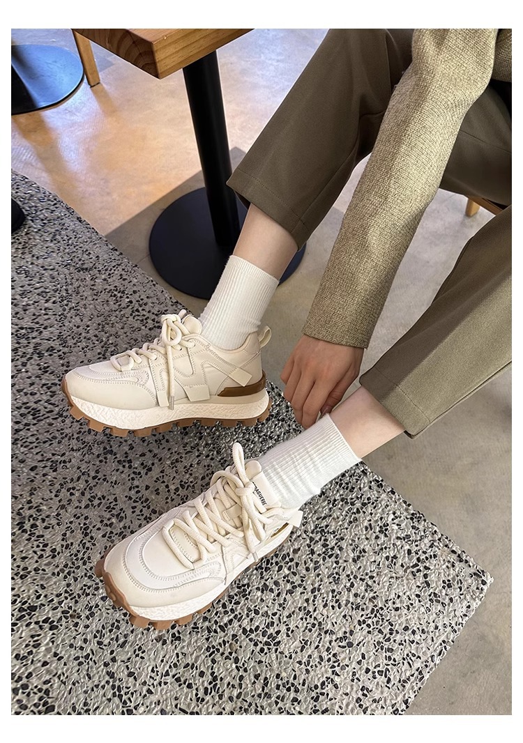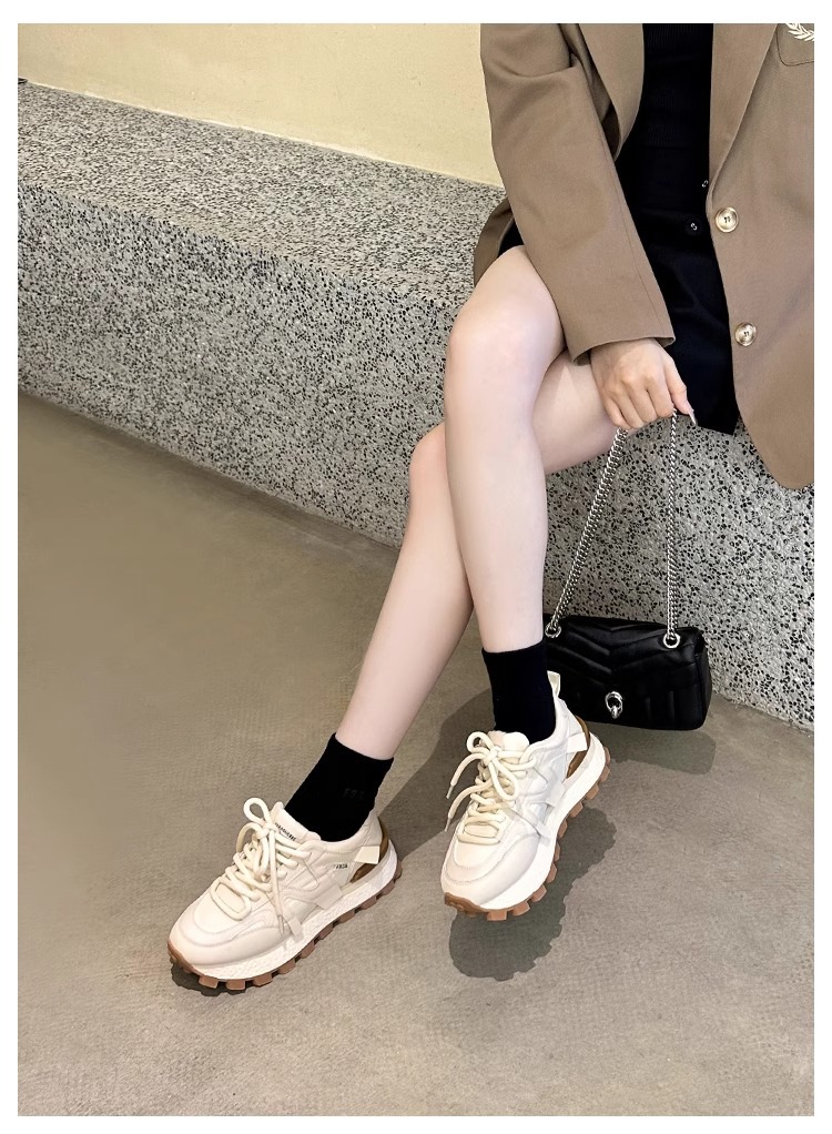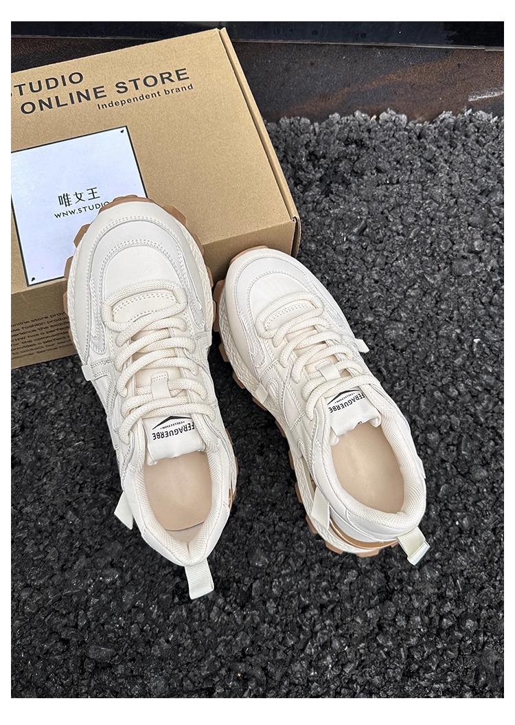 포레스트 검프 신발 여성 2025 새로운 색상 차단 부드러운 가죽 두꺼운 단독 다목적 부드러운 단독 와플 신발 스포츠 캐주얼 신발 아빠 신발스토어 가기