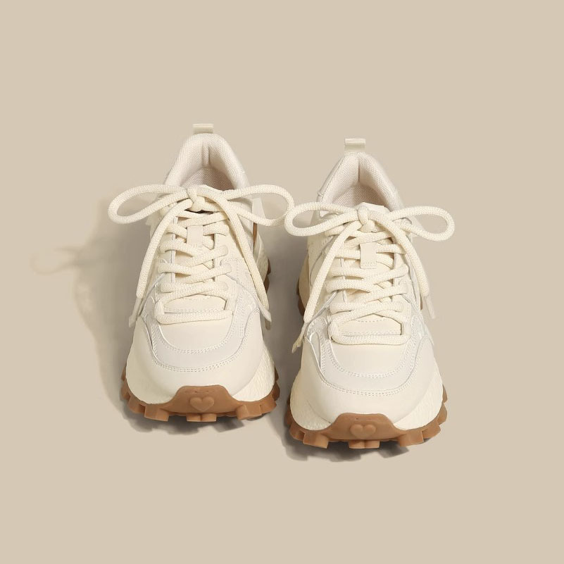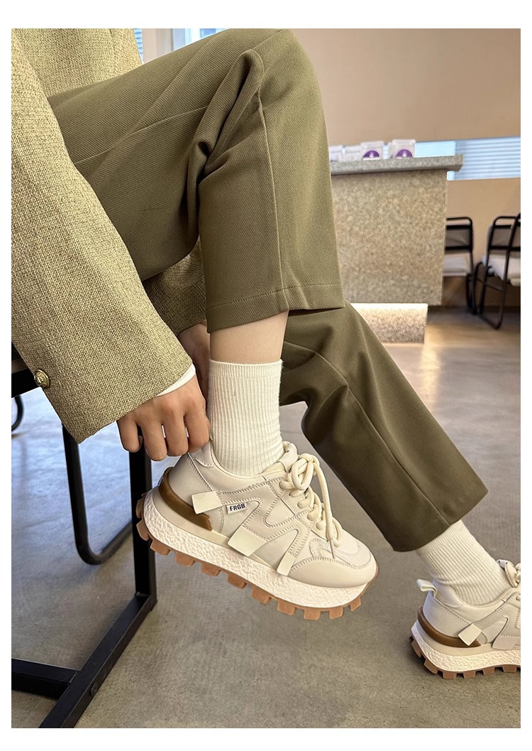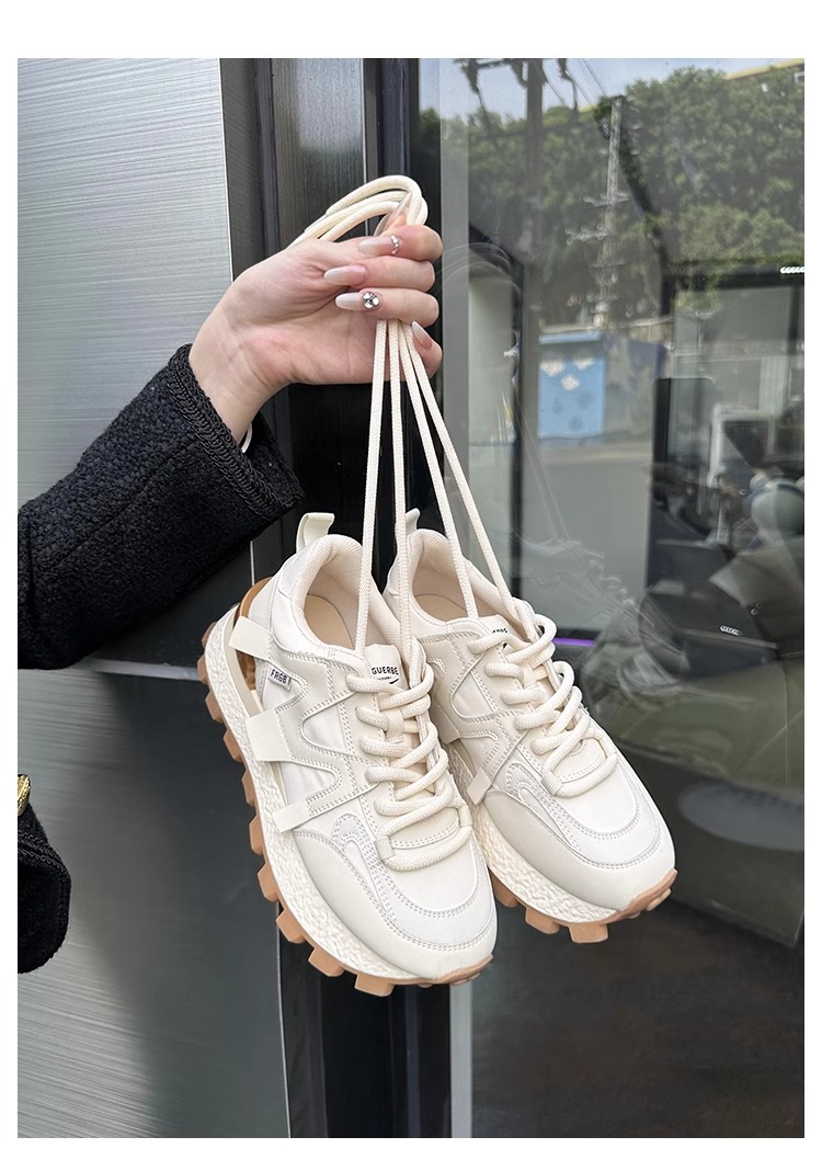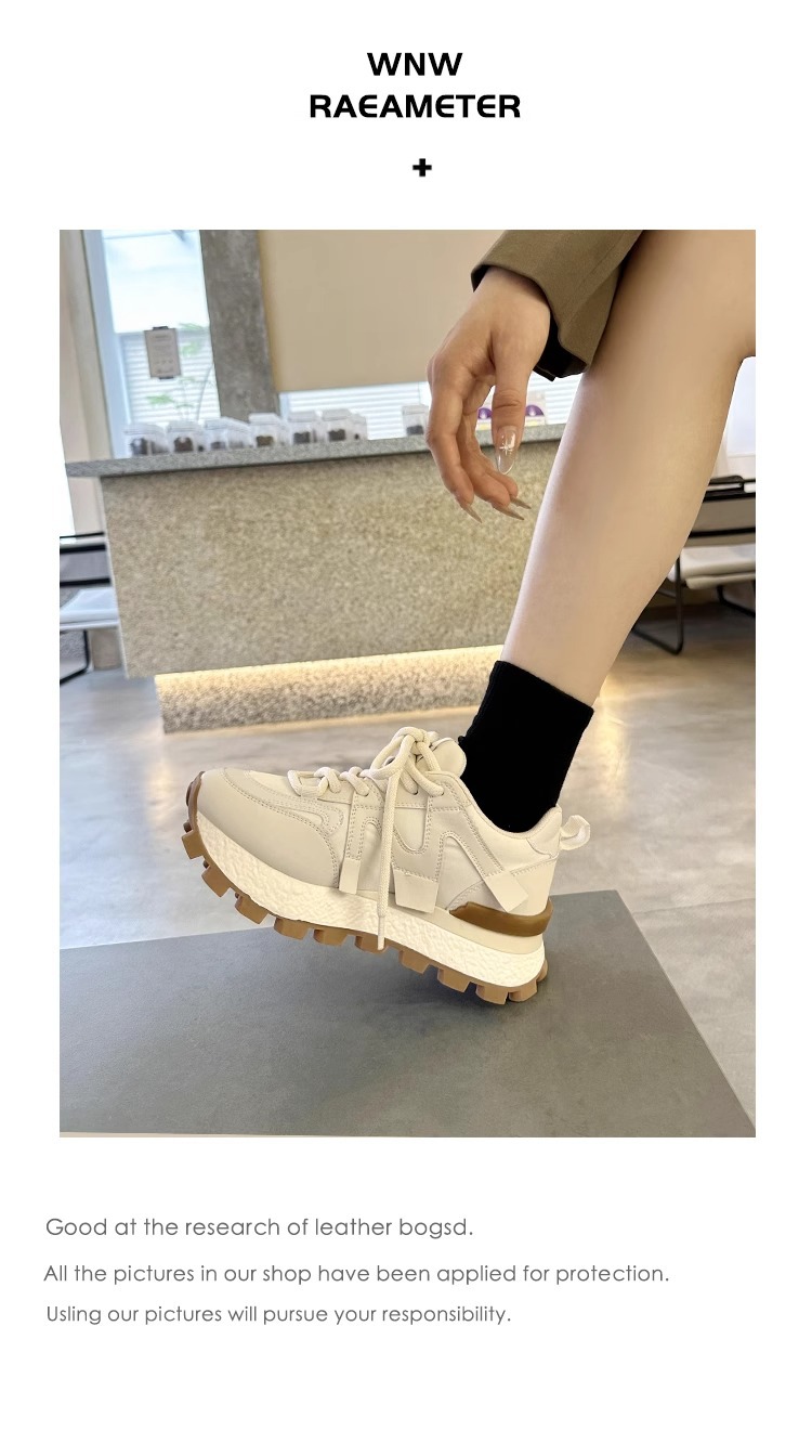 포레스트 검프 신발 여성 2025 새로운 색상 차단 부드러운 가죽 두꺼운 단독 다목적 부드러운 단독 와플 신발 스포츠 캐주얼 신발 아빠 신발