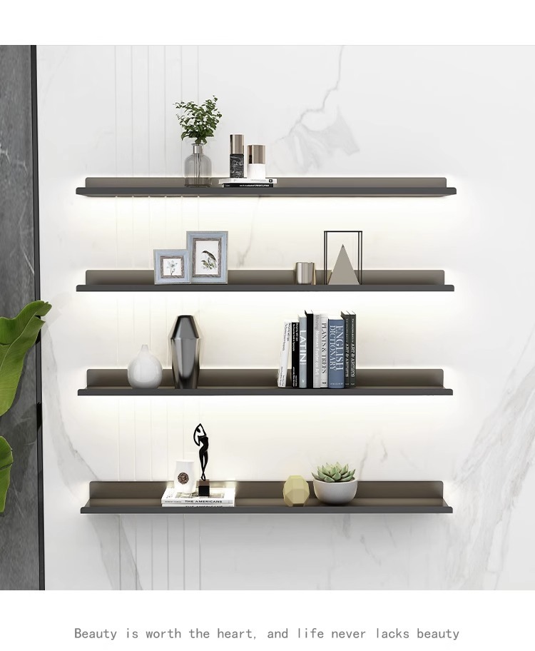 창조적 인 장식 철 발광 안티 드롭 선반 벽걸이 금속 선반 거실 가벼운 고급 책