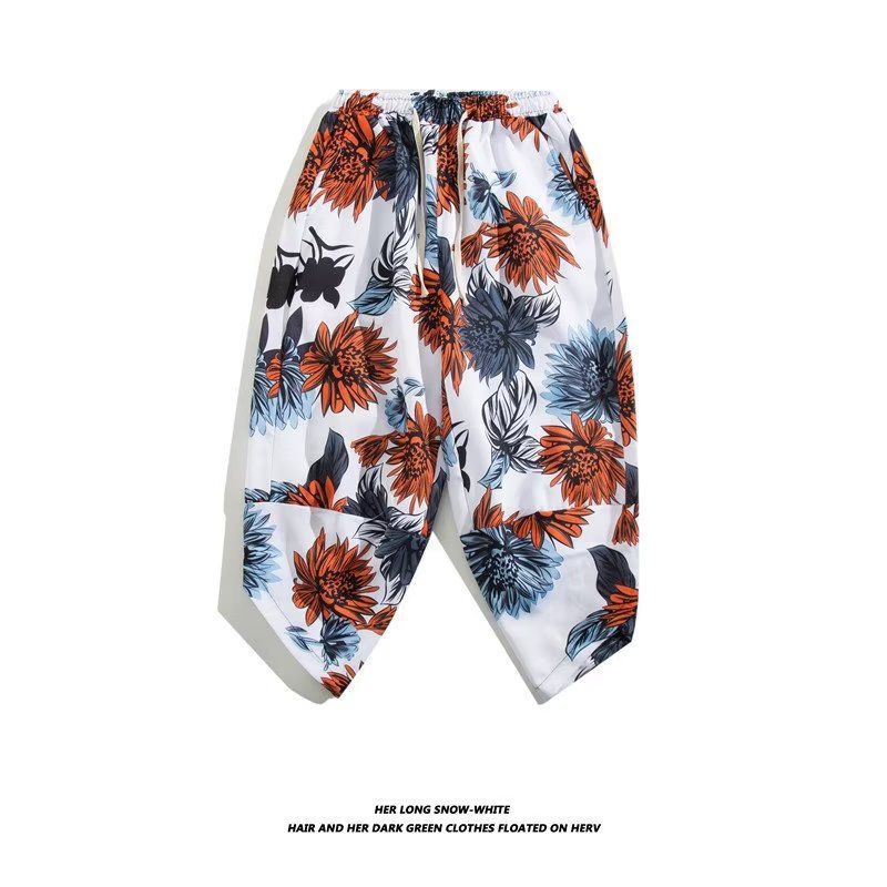 해변 바지 남자 여름 반바지 태국 자른 당근 바지 중국 스타일 남성 유행 브랜드 대형 느슨한 캐주얼 바지