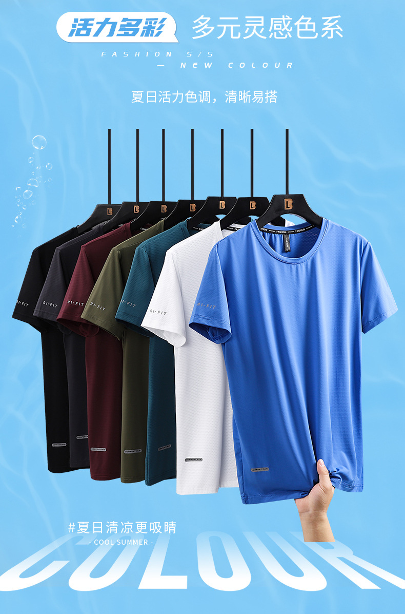 M-8XL 남자 여름 아이스 실크 짧은 소매 플러스 사이즈 남자 스포츠 빠른 건조 탑 티셔츠 공장 직접 공급스토어 가기