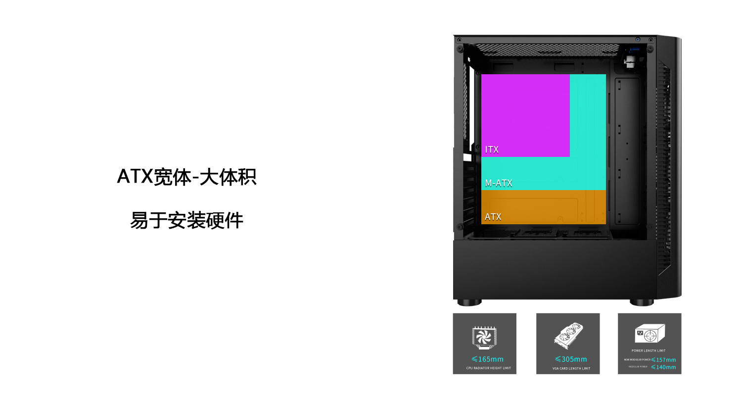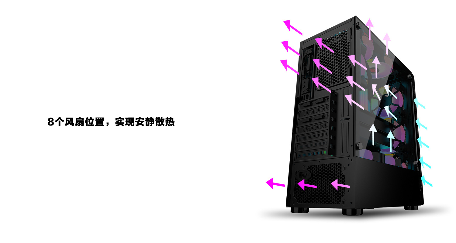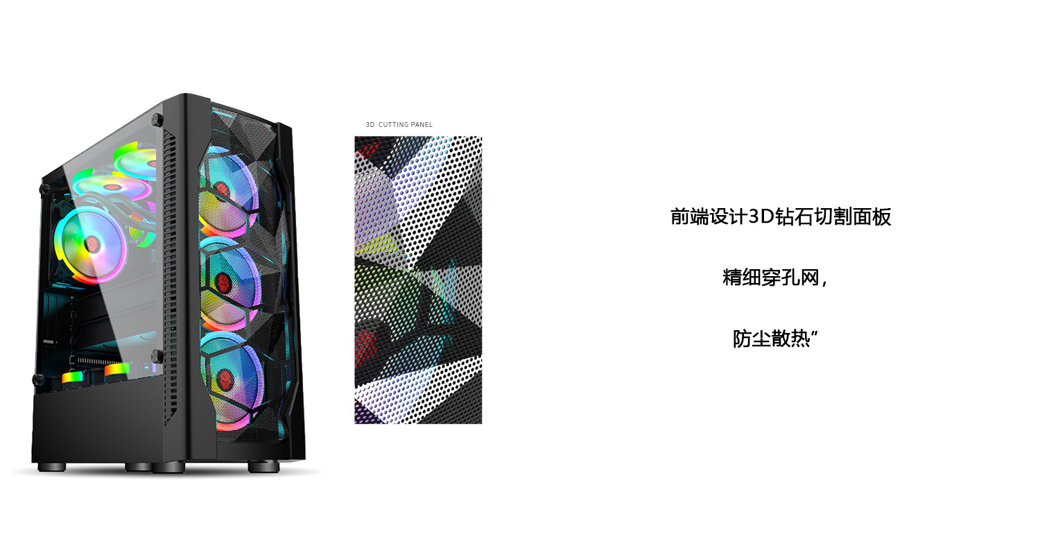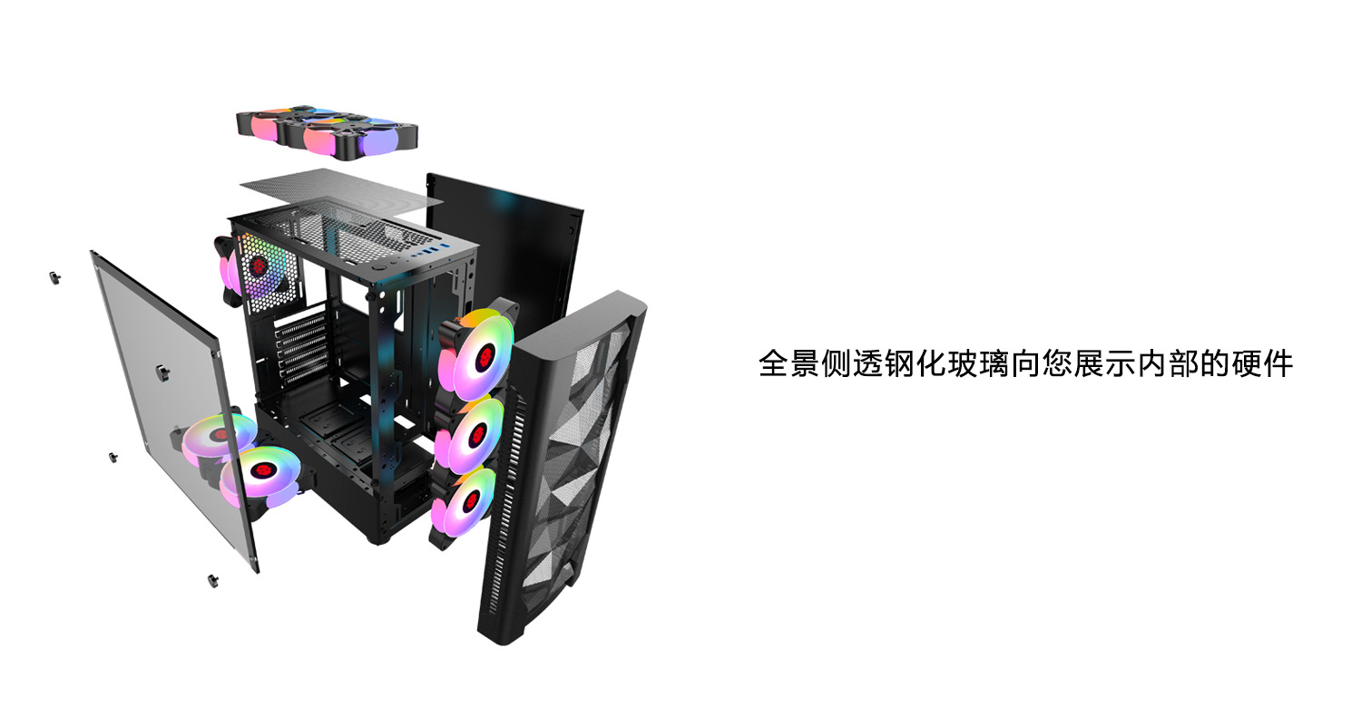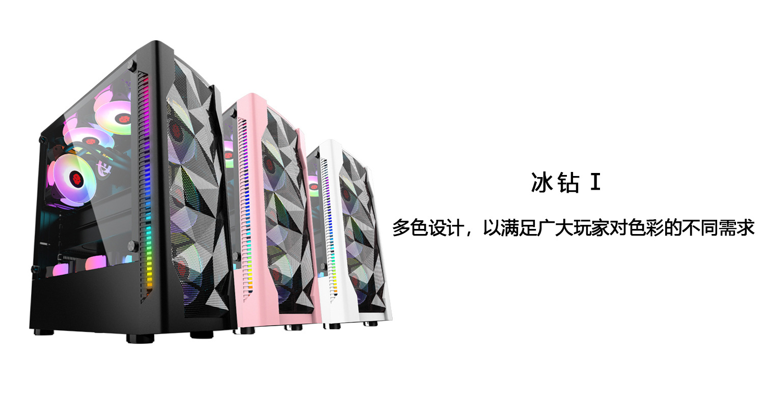 冰钻I游戏电脑机箱,带RGB风扇钢化玻璃桌面游戏电脑机箱