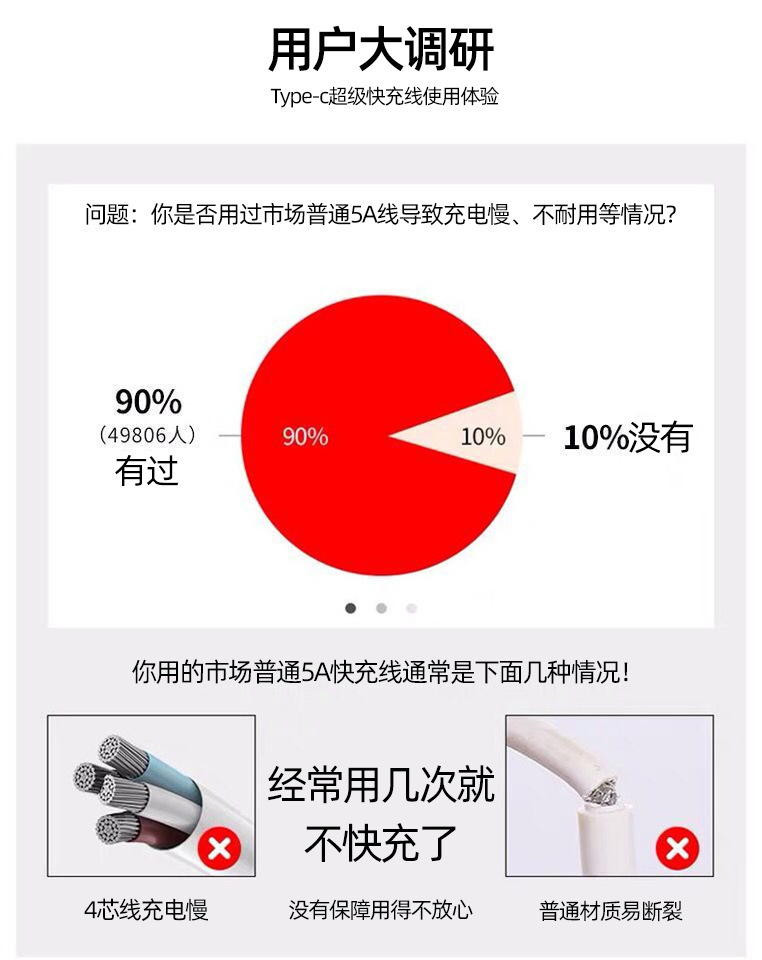 애플 안드로이드 5A 슈퍼 플래시 충전 6A 연장 휴대 전화 USB 데이터 케이블 도매 typec 충전 스레드