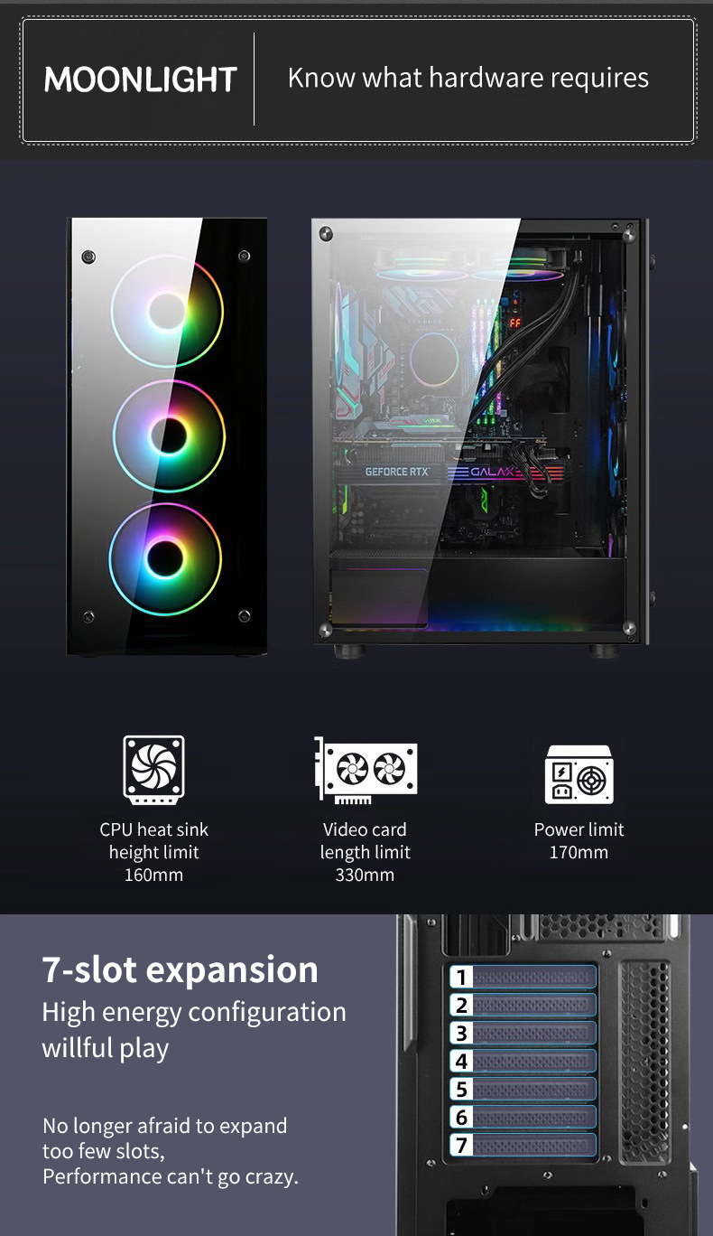 月光双面钢化玻璃电脑机箱USB3.0 ATX游戏电脑机箱