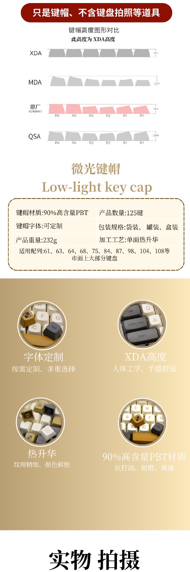 낮은 가벼운 키 캡 XDA 고도의 승화 성격 키 캡 PBT 소재 불투명 한 기계식 키보드 캡 풀 세트 박스