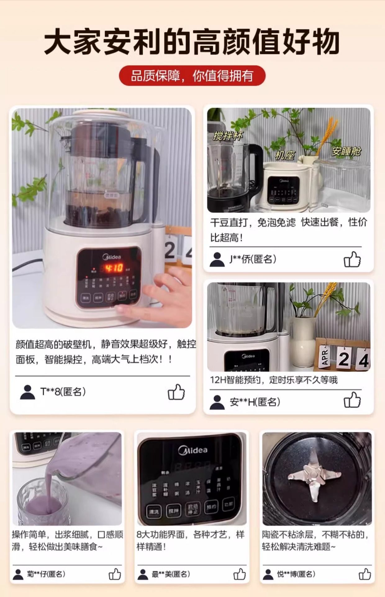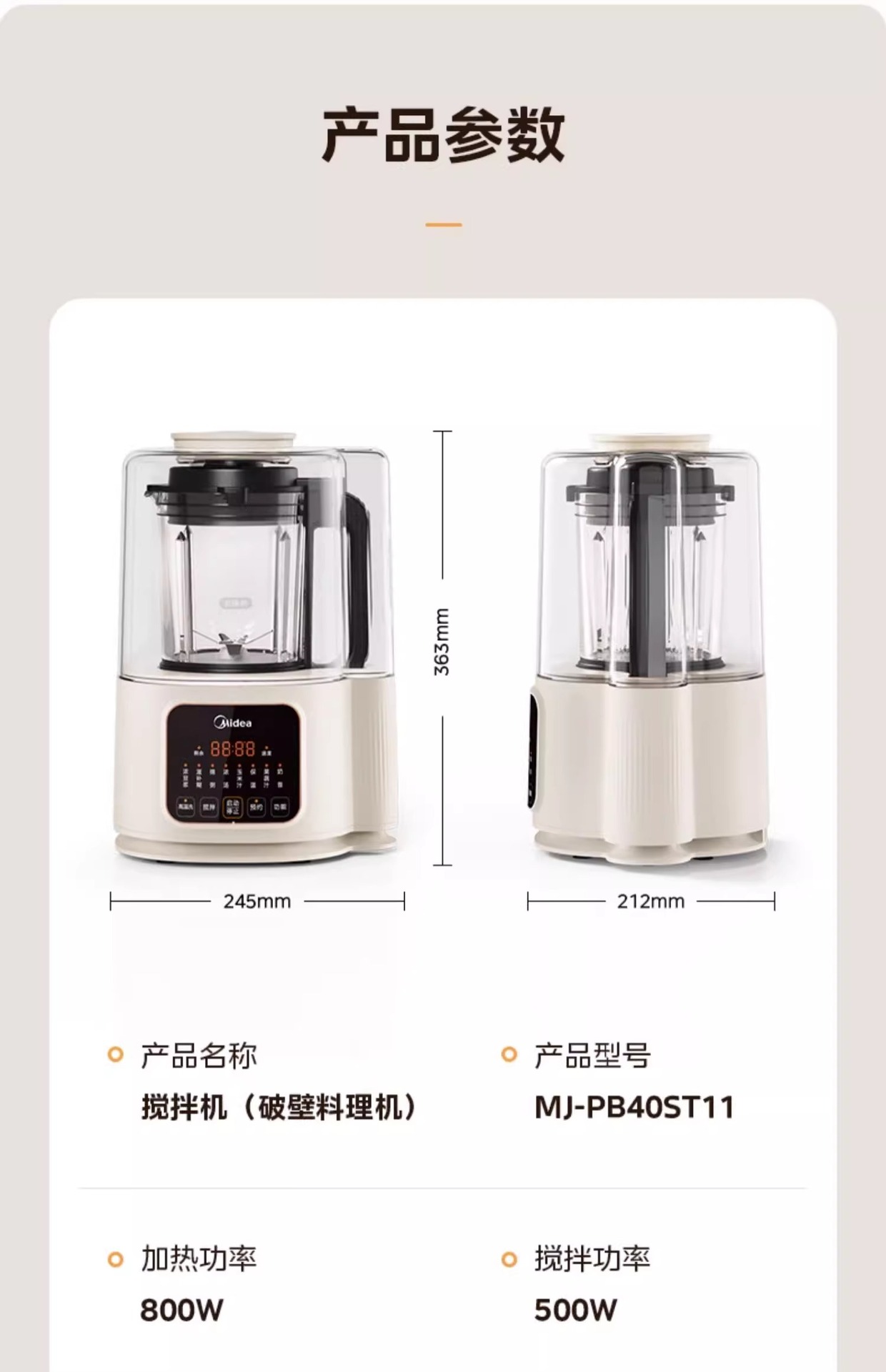 Midea 잠자는 벽 깨는 기계 다기능 두유 기계 요리 쌀 페이스트 기계 가정용 Juicer PB40ST11 그룹 구매스토어 가기