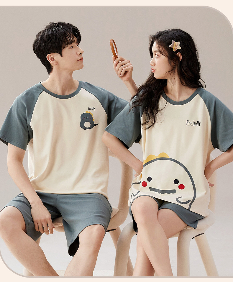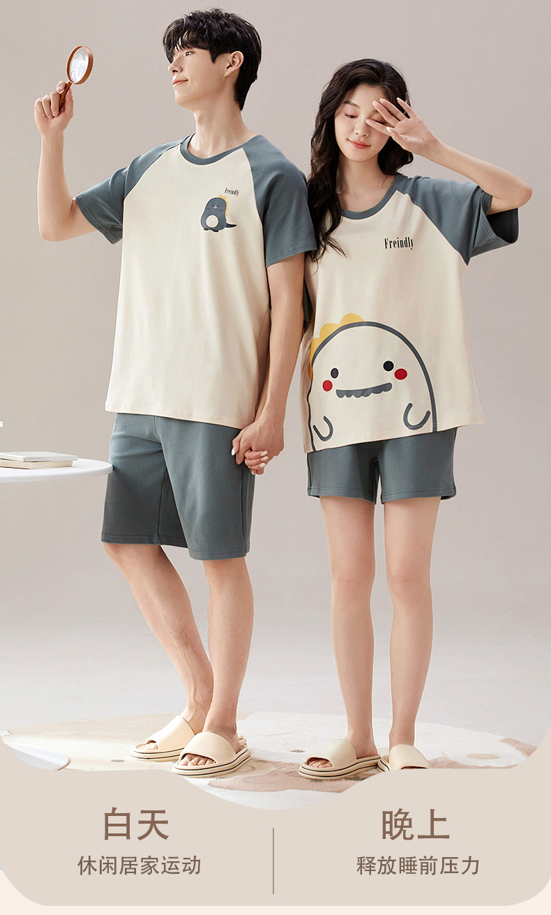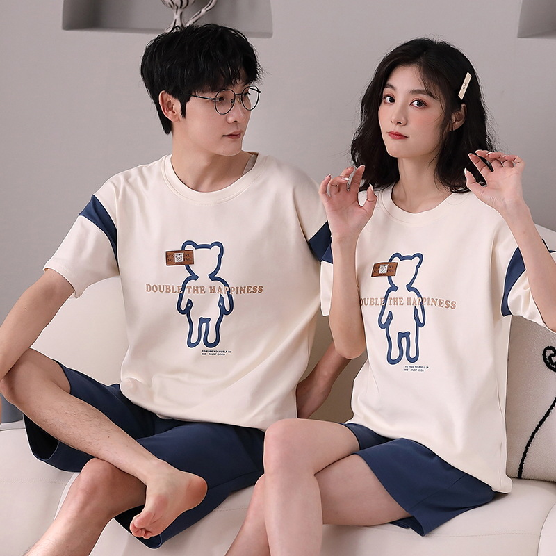 커플 잠옷 여름 반바지 만화 캐주얼 느슨한 통기성 얇은 남성과 여성의 홈 세트 큰 크기스토어 가기