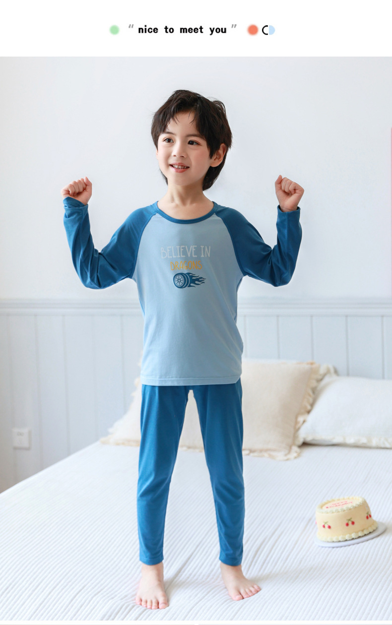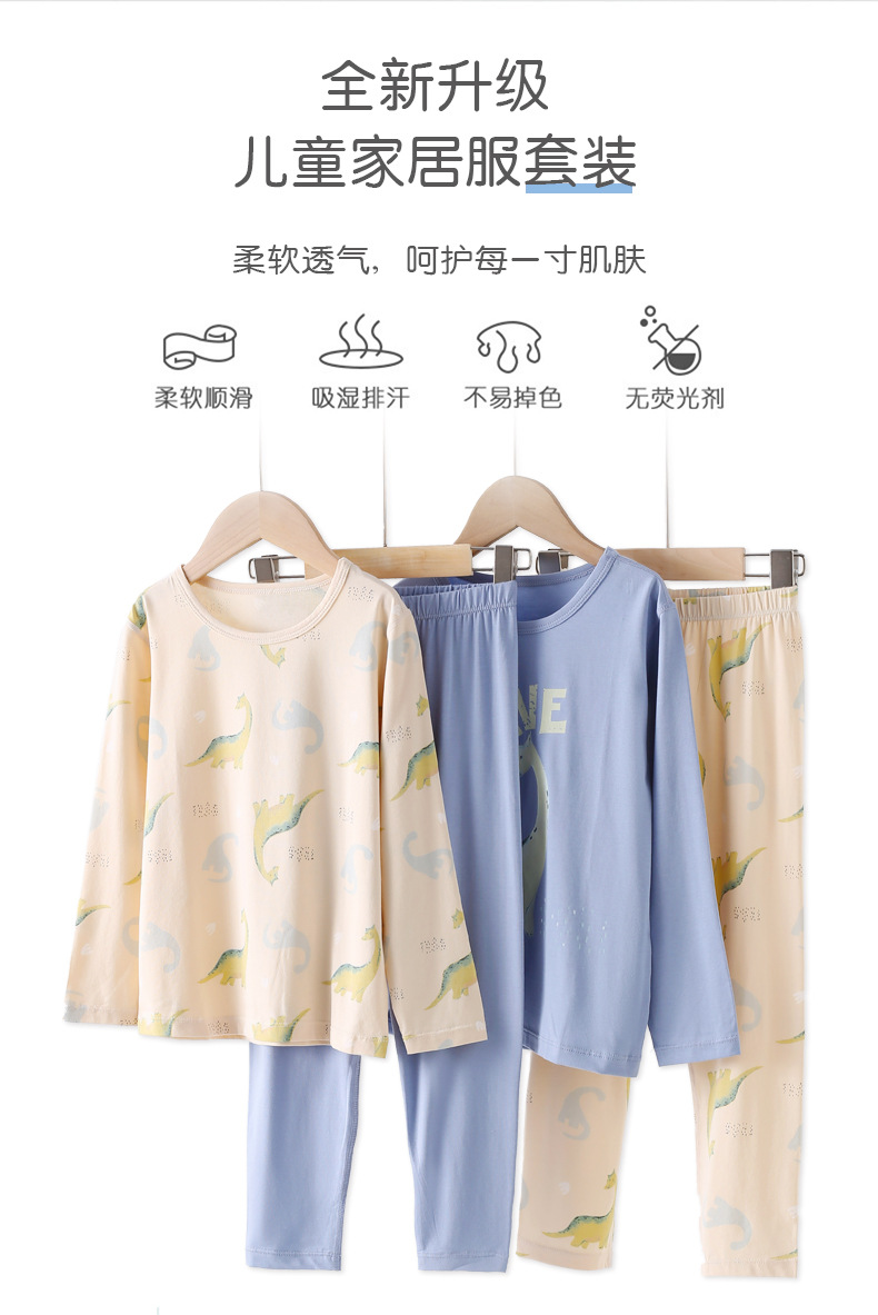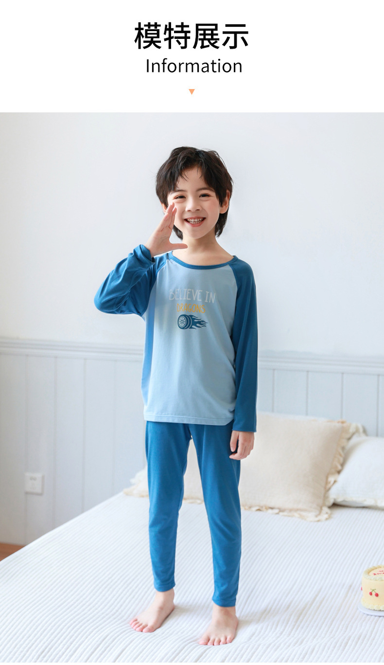 모달 소년 잠옷 남학생과 나이 많은 아이들의 긴팔 빗질 면화 얇은 어린이 가정복 세트 긴 존스 클래스 A스토어 가기