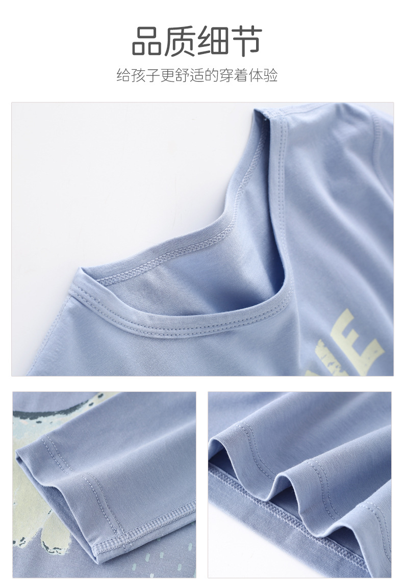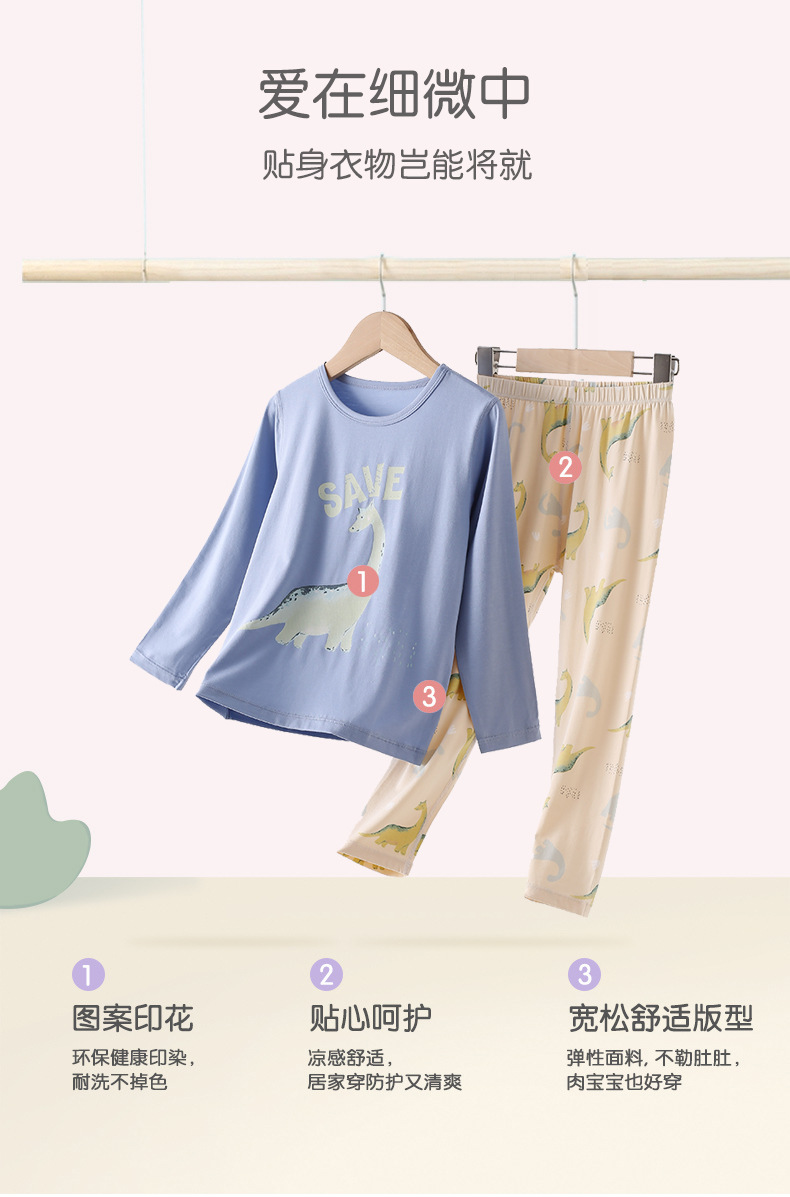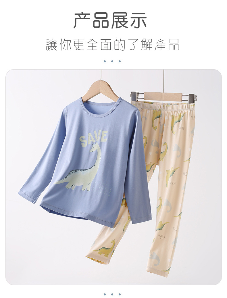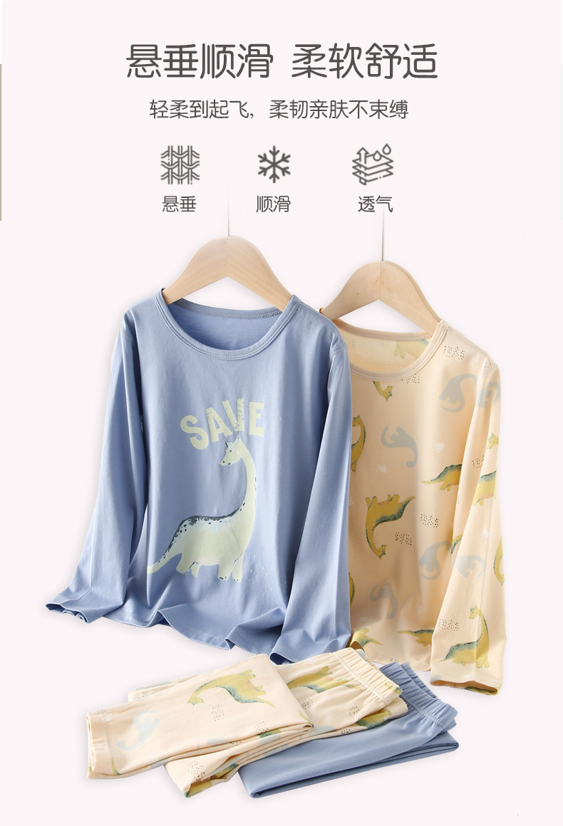 모달 소년 잠옷 남학생과 나이 많은 아이들의 긴팔 빗질 면화 얇은 어린이 가정복 세트 긴 존스 클래스 A스토어 가기