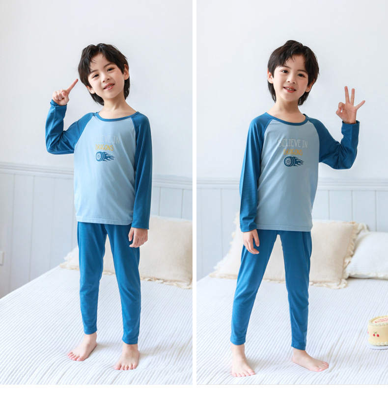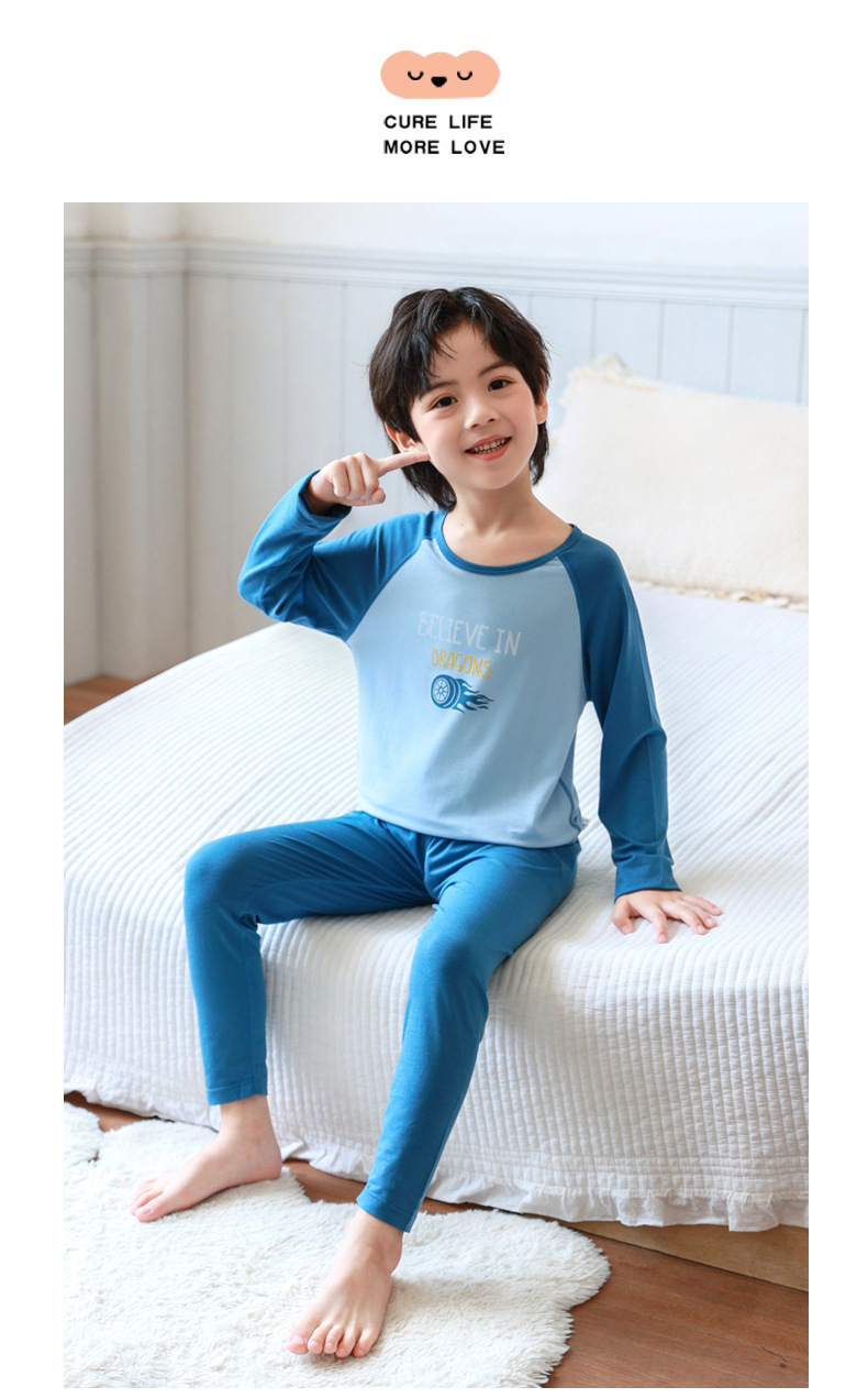모달 소년 잠옷 남학생과 나이 많은 아이들의 긴팔 빗질 면화 얇은 어린이 가정복 세트 긴 존스 클래스 A
