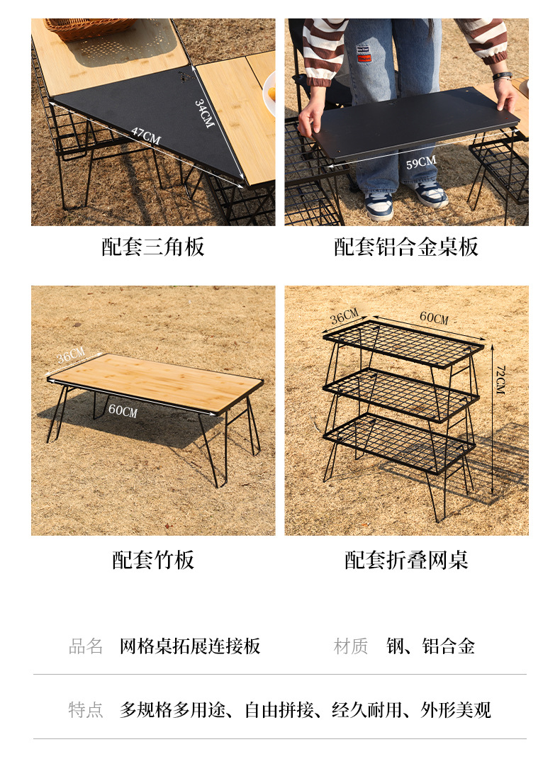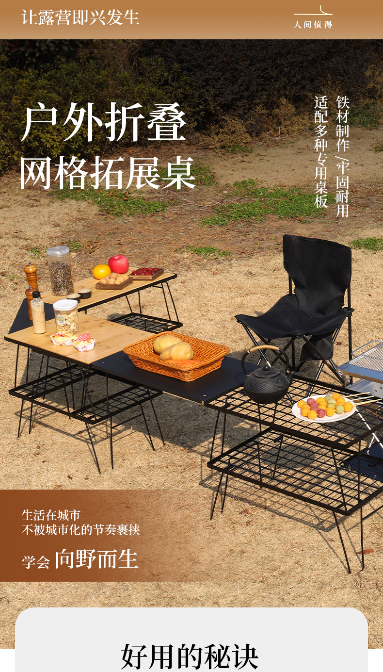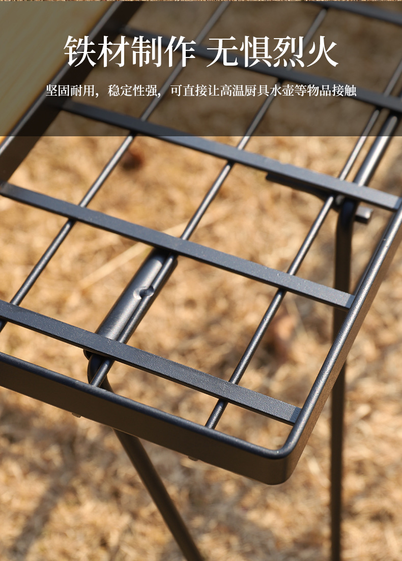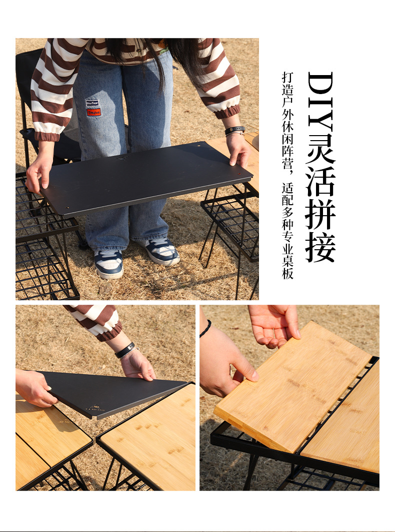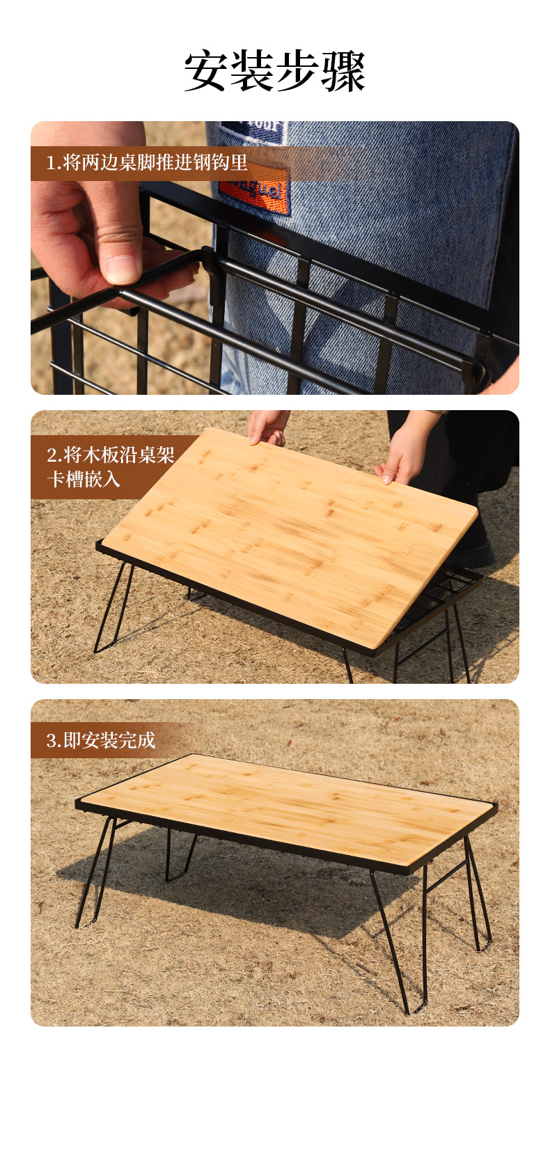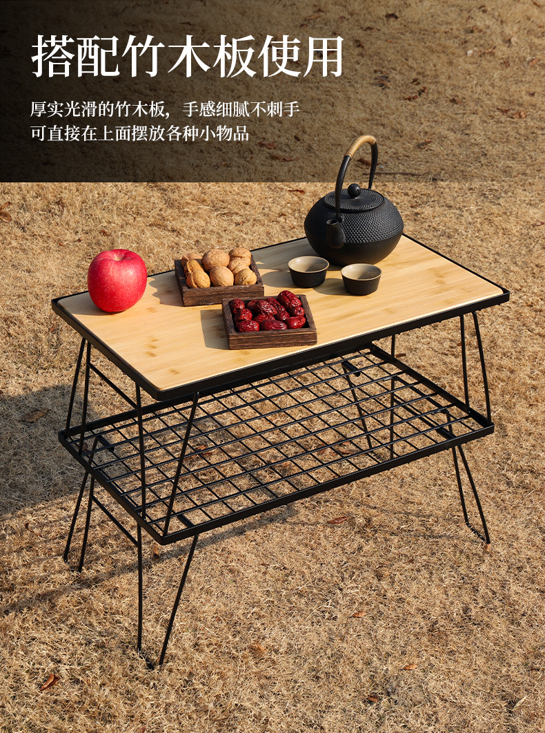 공장 도매 철망 접이식 테이블 피크닉 캠핑 바베큐 수납 선반 강판 목재 연결판 접합식 식탁