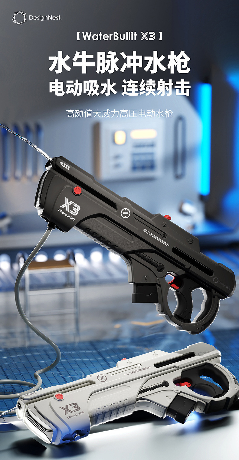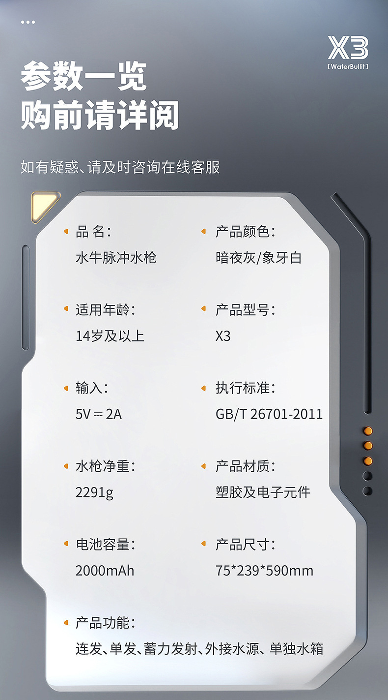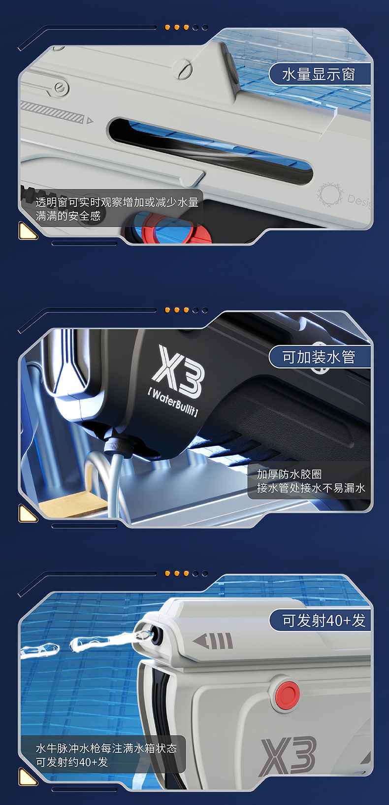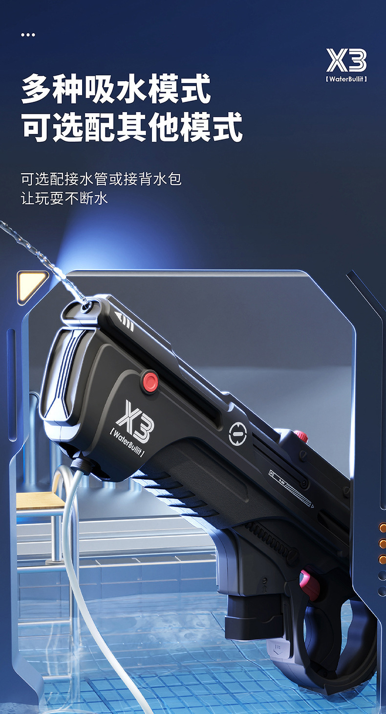 국경 간 새로운 버팔로 X3 펄스 전기 물총 장난감 큰 고속 압력 성인 물총 아마존