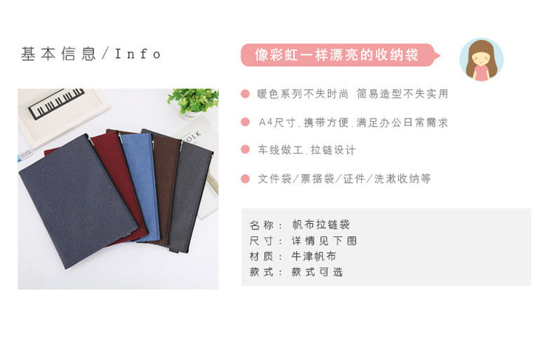 제리 a4 파일 가방 캔버스 지퍼 가방 방수 파일 가방 정보 가방 단색 두꺼운 학생 데이터 저장 가방스토어 가기