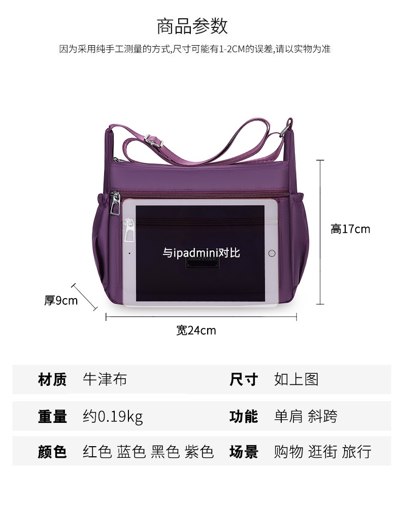 여성 옥스포드 천 가방 우아한 메신저 가방 시어머니 나일론 방수 경량 여행 배낭 중년 어머니 가방 숄더백