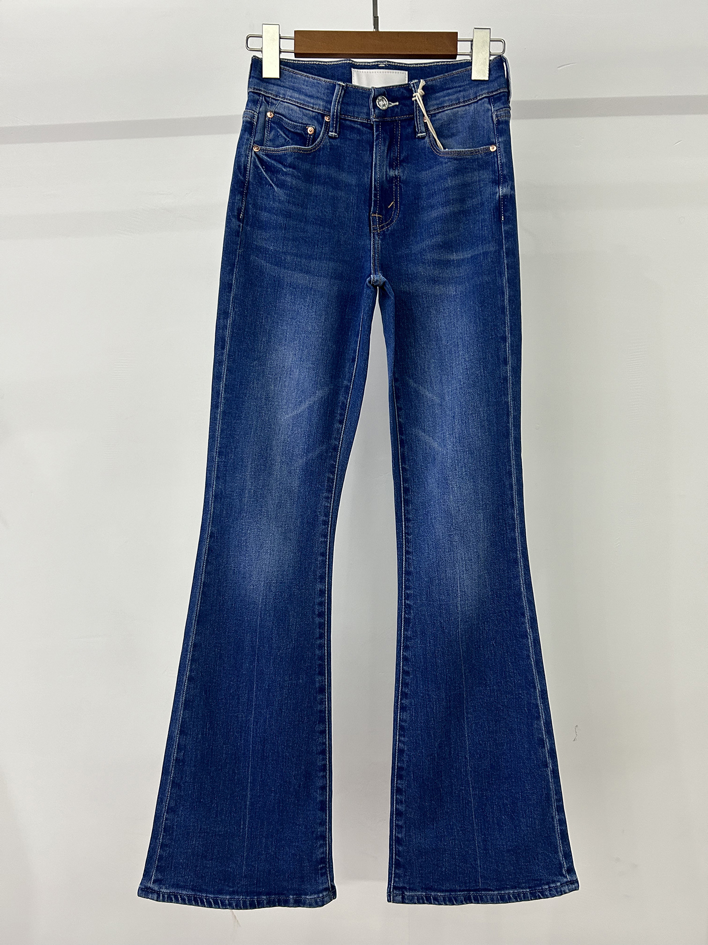 2024 이른 봄 새로운 유럽과 미국의 MO 같은 스타일 스카이 블루 높은 허리 중간 라인 슬림 핏 마이크로 데님 바지스토어 가기