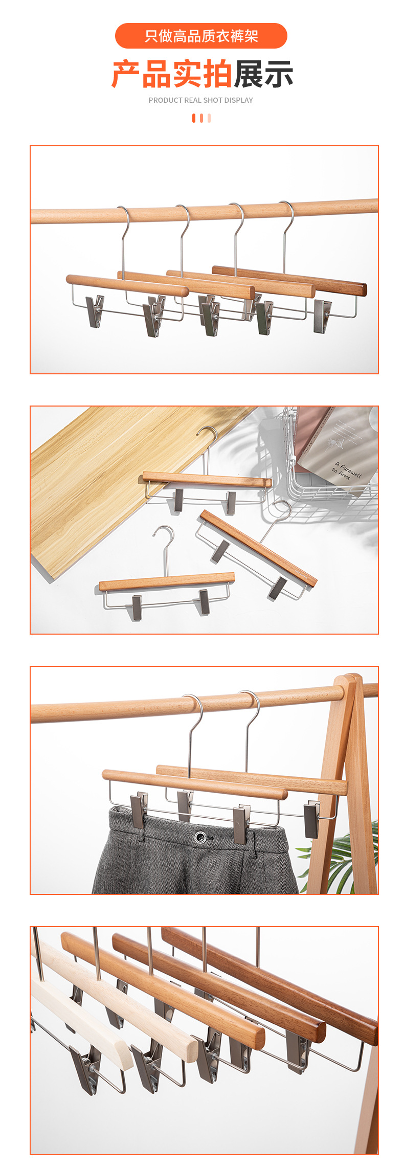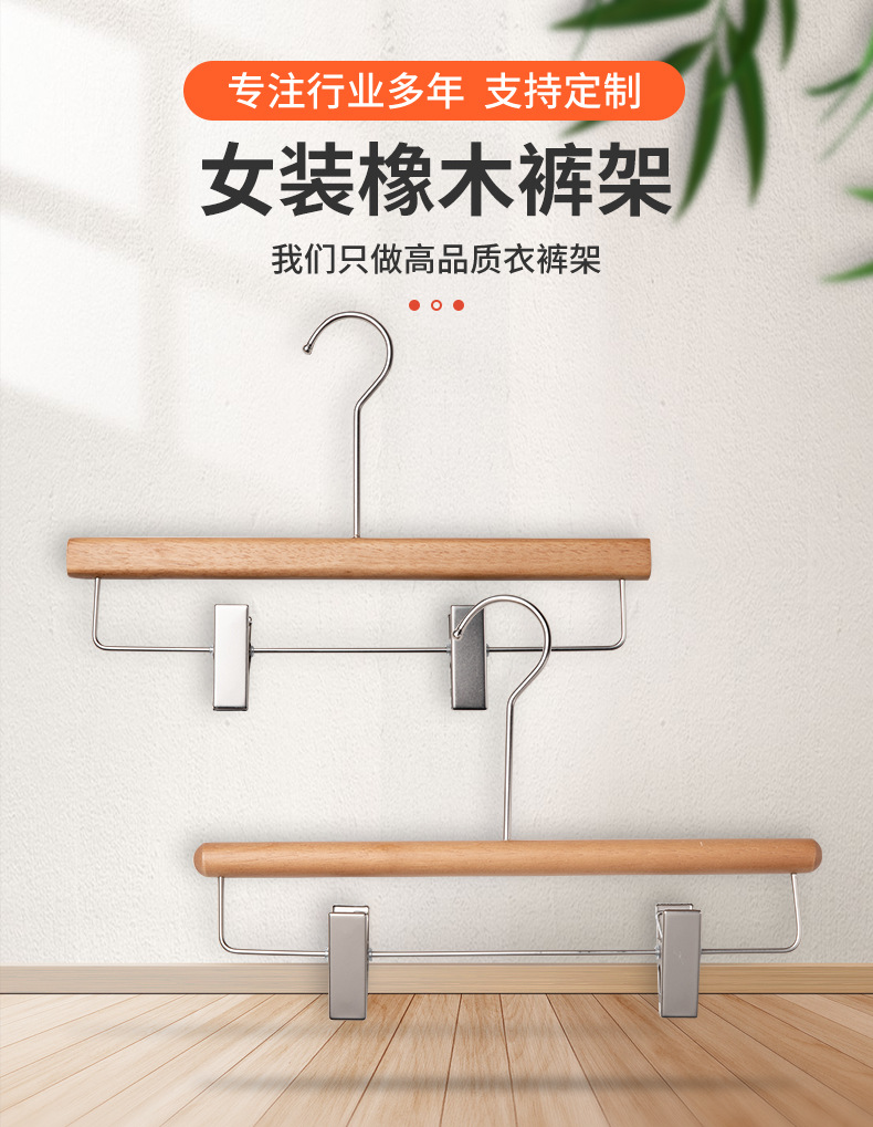 호두 나무 컬러 여성 오크 바지 랙 여성 의류 매장 단단한 나무 원활한 고급 도매 바지 랙