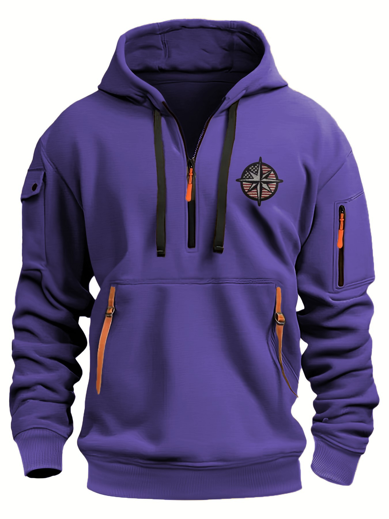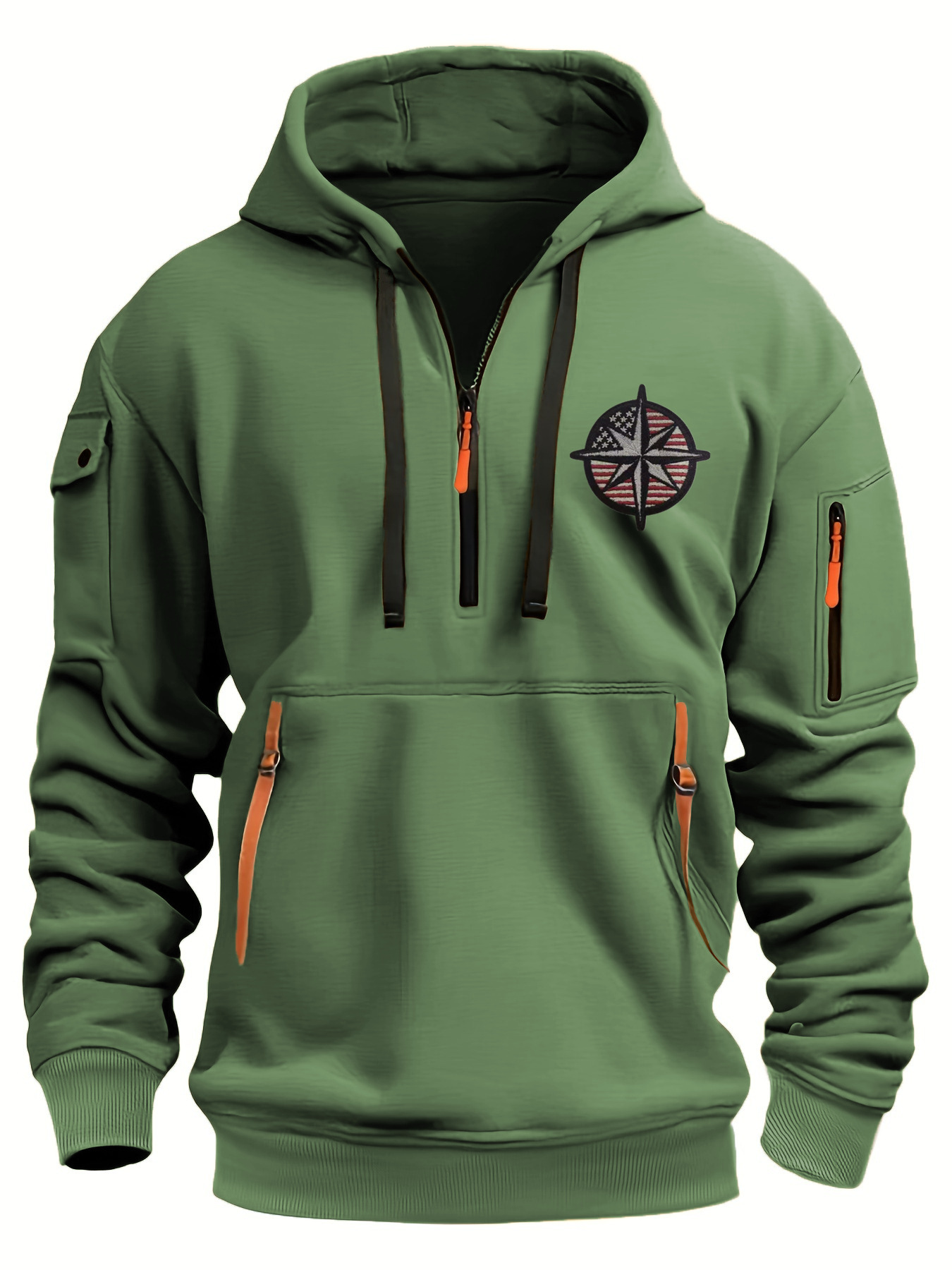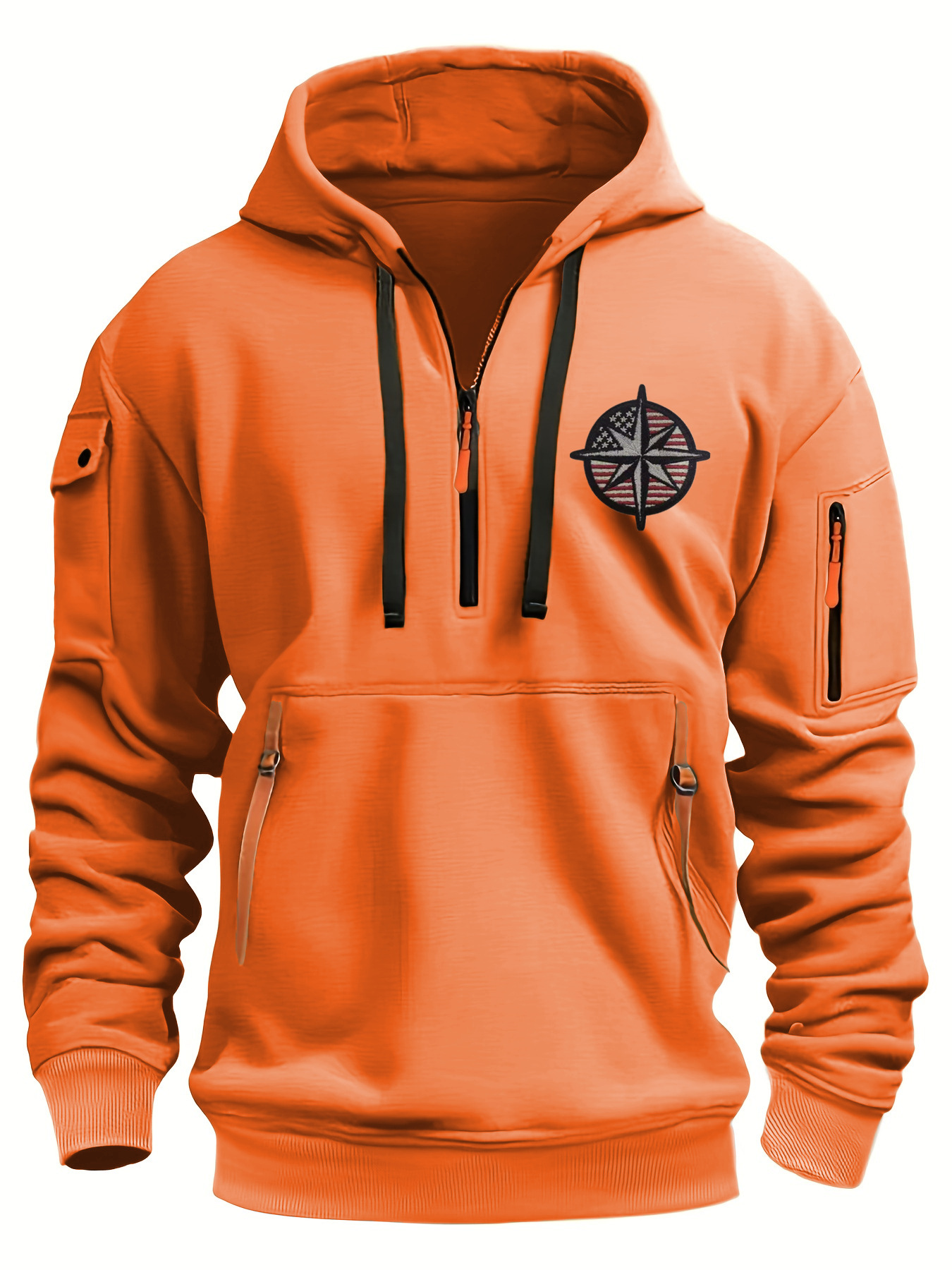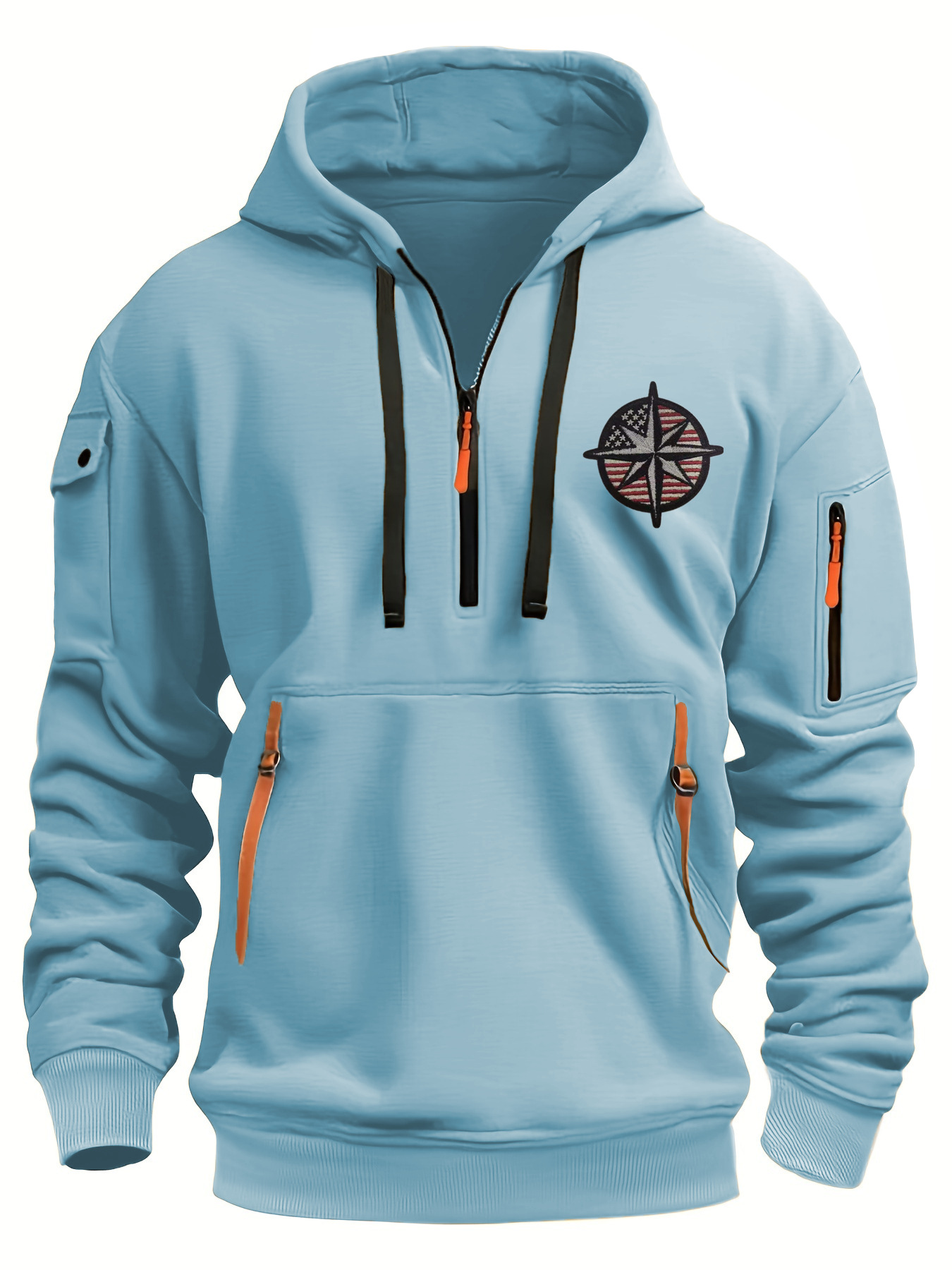 남성 캐주얼 스포츠 멀티 지퍼 팔 자수 배지 스웨터 풀오버 후드