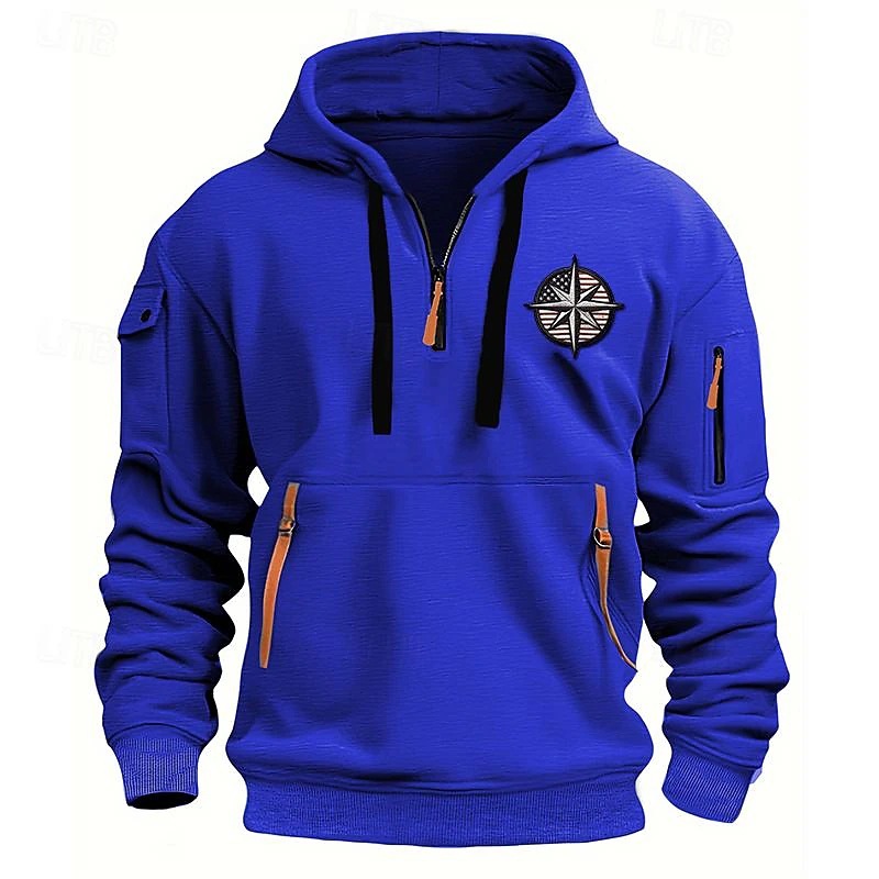 남성 캐주얼 스포츠 멀티 지퍼 팔 자수 배지 스웨터 풀오버 후드스토어 가기