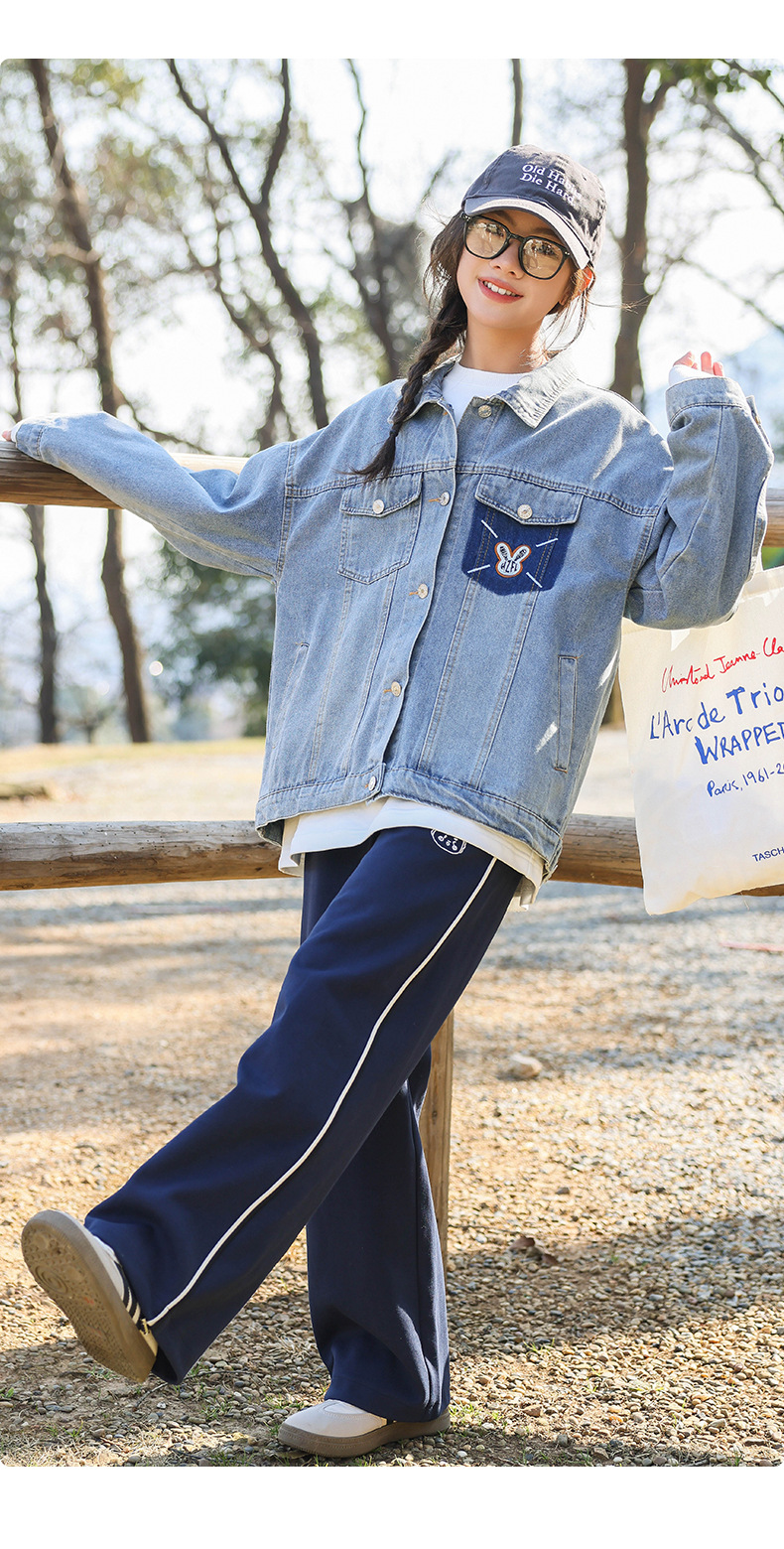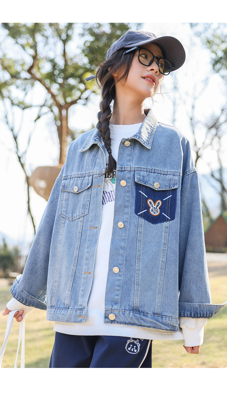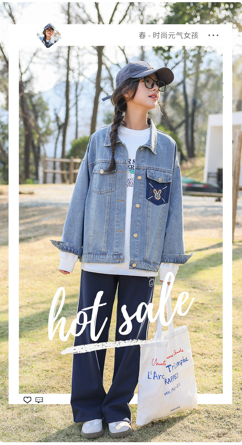소녀 데님 코트 봄과 가을 2024 15 세 초 중학생을위한 새로운 유행 유행 재킷 24S1스토어 가기