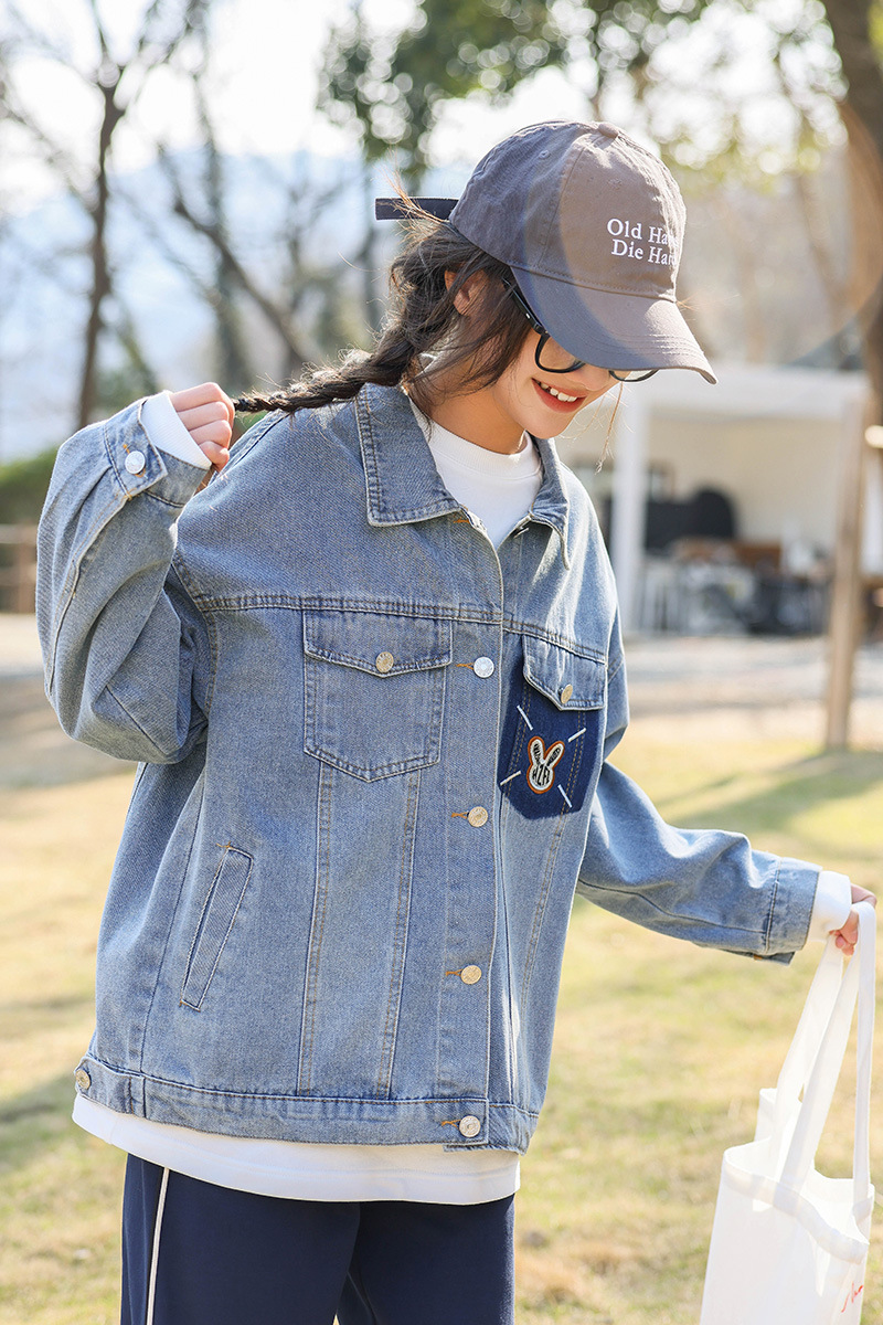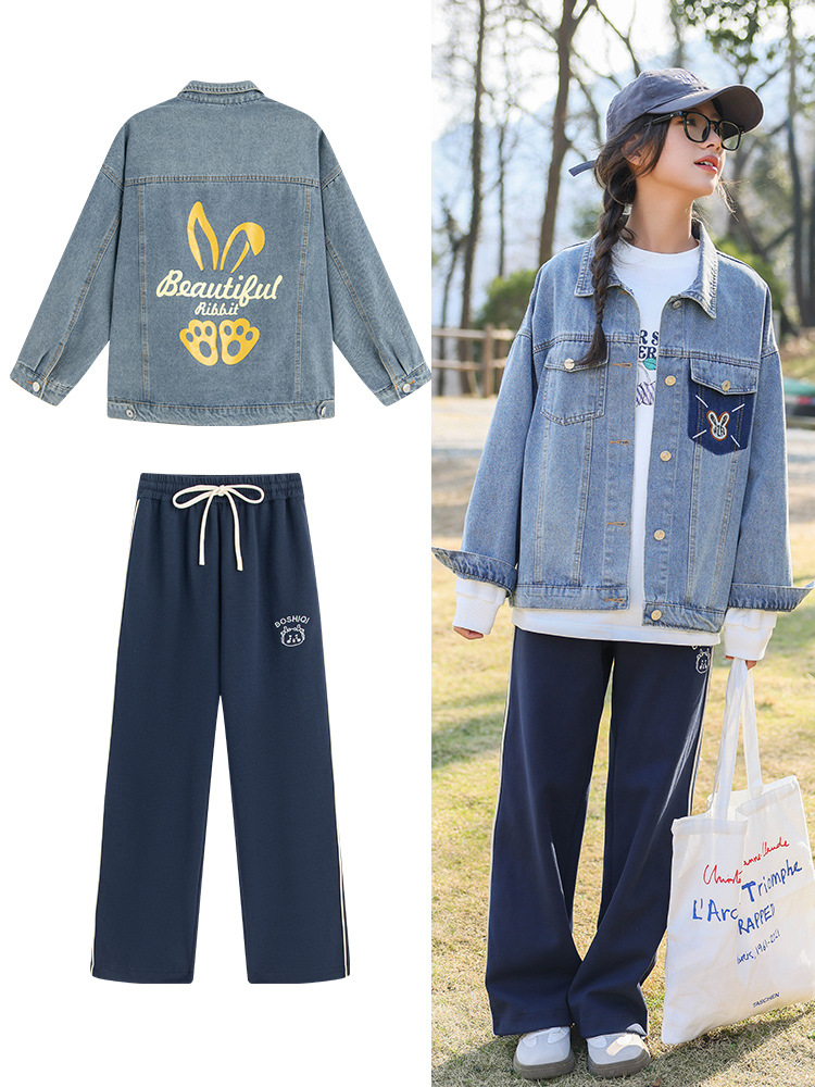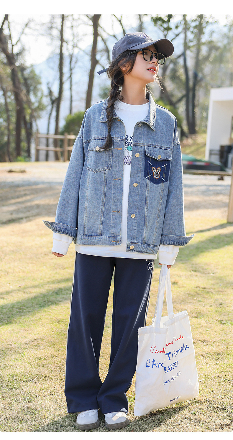 소녀 데님 코트 봄과 가을 2024 15 세 초 중학생을위한 새로운 유행 유행 재킷 24S1스토어 가기
