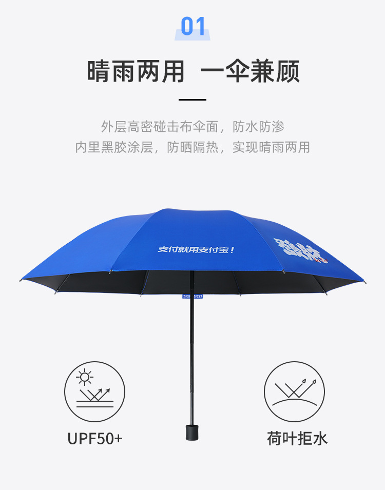 Alipay 접는 우산 반대로 자외선 태양 보호 햇빛 태양 우산 검은 접착제 맑고 비 우산