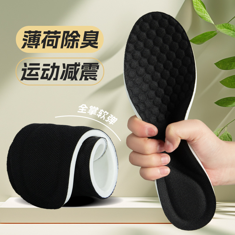 공장 직접 공급 민트 탈취제 스포츠 통기성 땀 흡수성 남성 마사지 부드러운 바닥 똥은 피곤하지 않은 발 깔창 오랫동안 서있는 여성 느낌스토어 가기