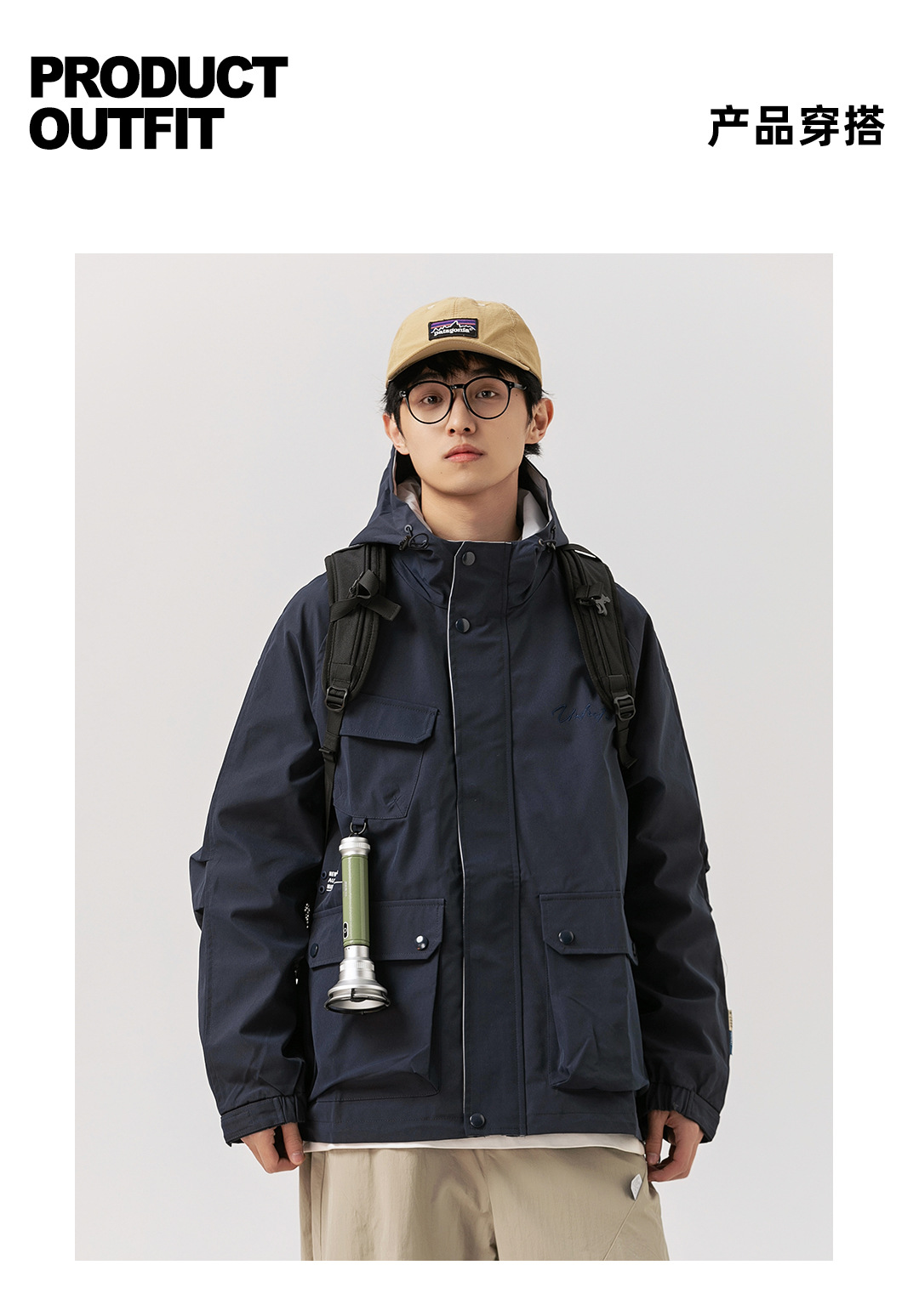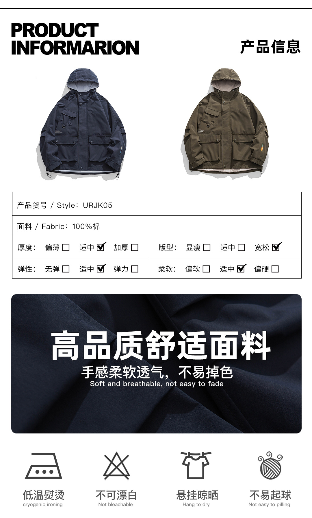 Ru Meng 일본 복고풍 후드 재킷 남성 봄과 가을 산악 도시 작업복 재킷 캐주얼 재킷 남성