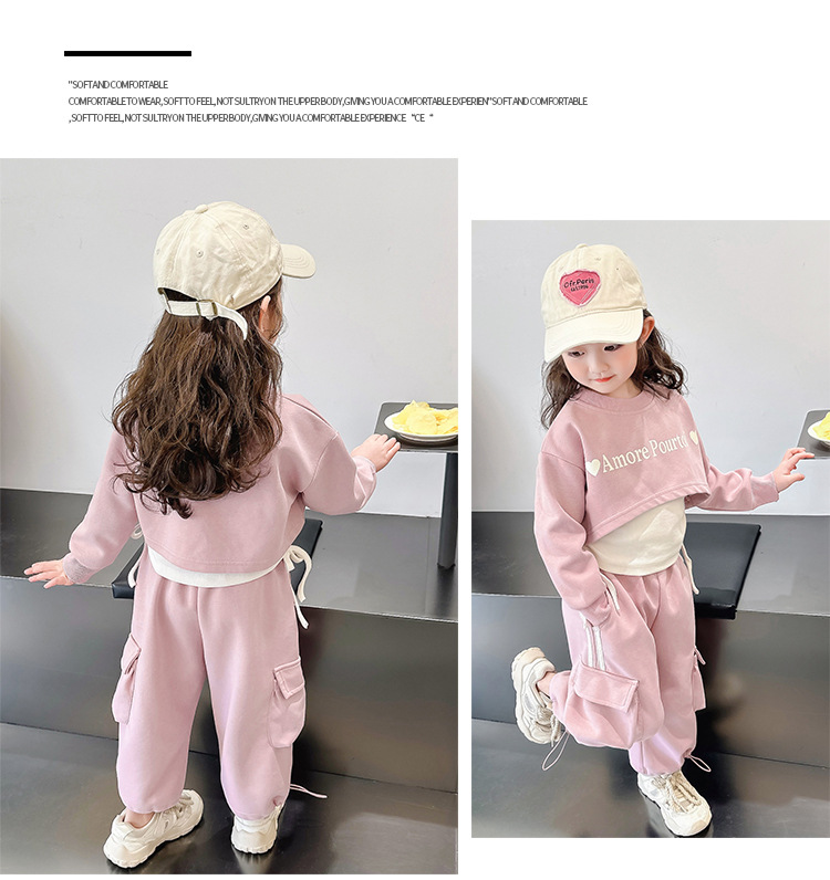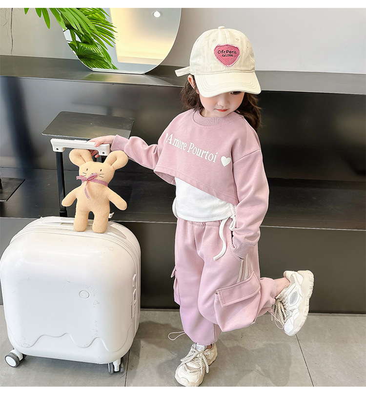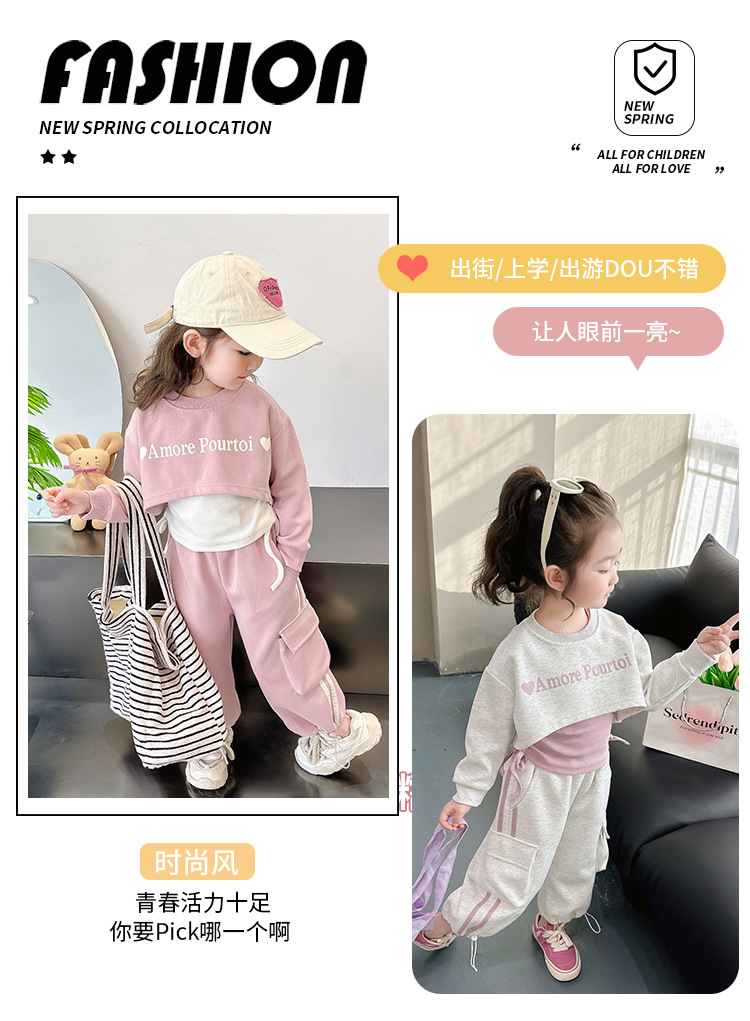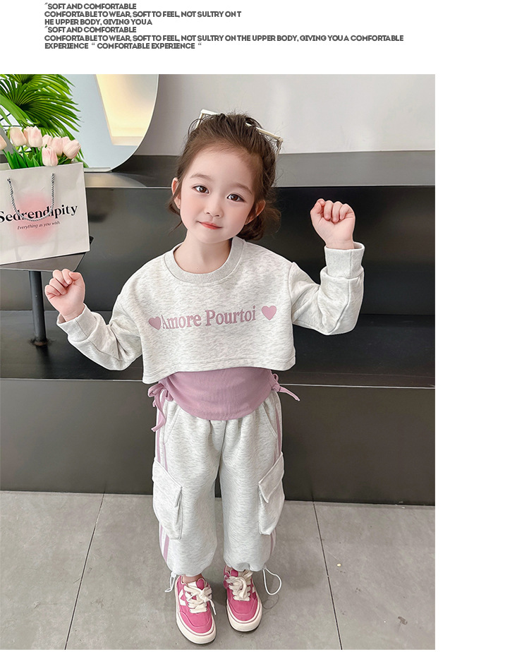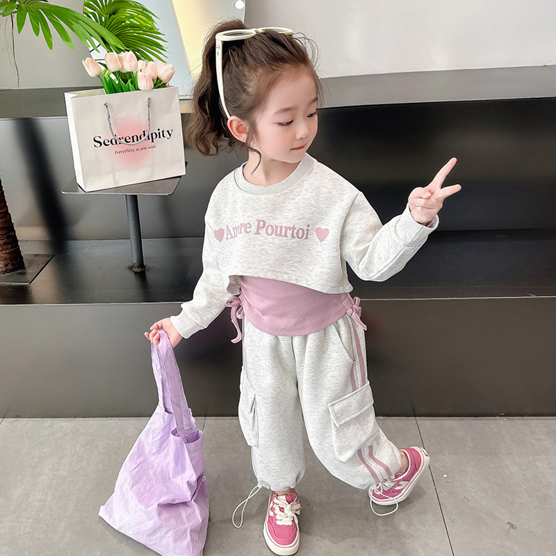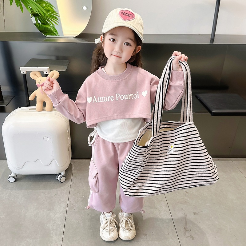 소녀의 사랑 편지 세 조각 세트 2024 봄 새로운 유행 어린이 여성 아기 편지 스포츠 세트