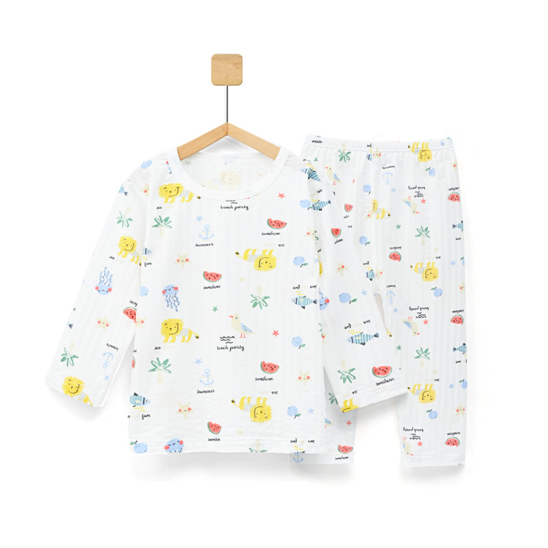 면화 소년과 소녀를 세트 어린이 잠옷 홈 에어컨 옷면 얇은 여름 프린트 긴 소매 세트스토어 가기