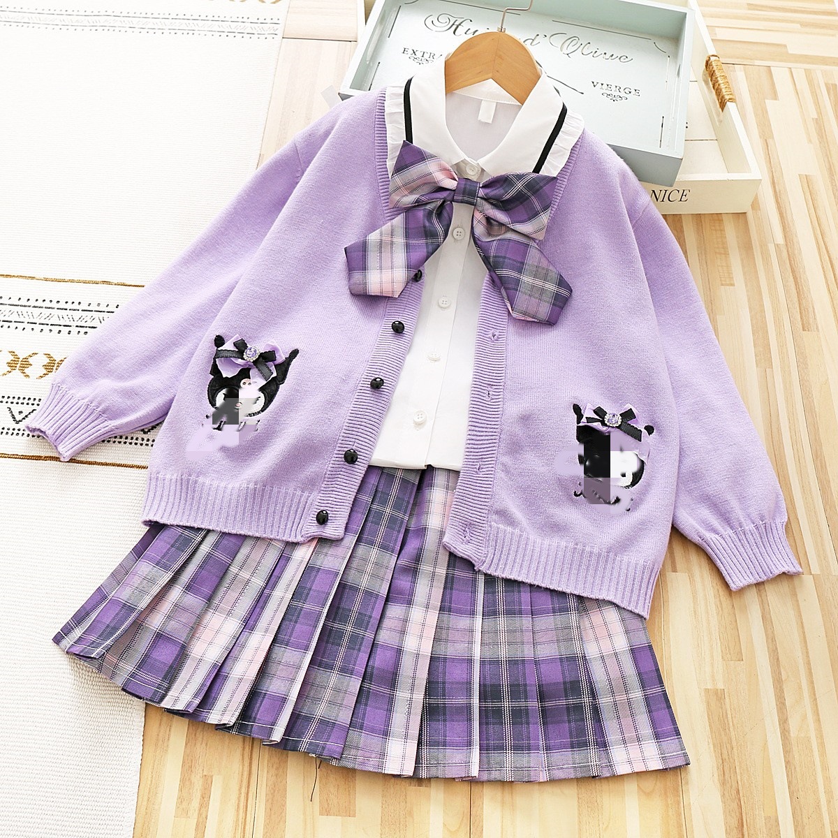 Kulomi 여자 jk 스커트 세트 2024 봄 서양식 니트 코트 플리츠 스커트 스타일 3 피스 세트