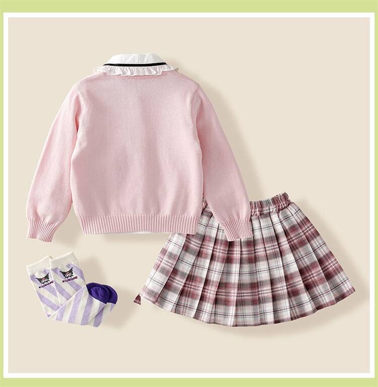 Kulomi 여자 jk 스커트 세트 2024 봄 서양식 니트 코트 플리츠 스커트 스타일 3 피스 세트스토어 가기