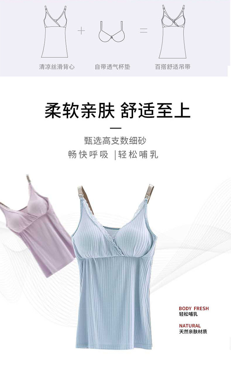 수유용 슬립탑, 수유조끼, 홈웨어, 임신 및 산후복, 가슴 패드 포함, 노출 방지 조끼형 모달 소재