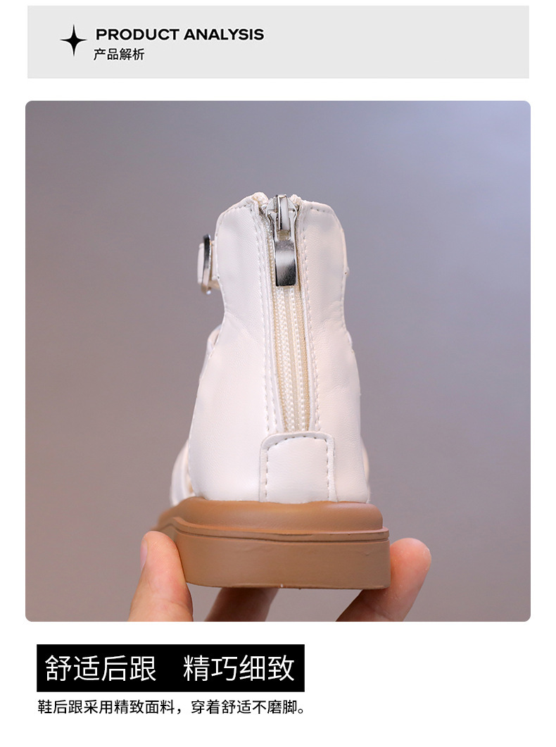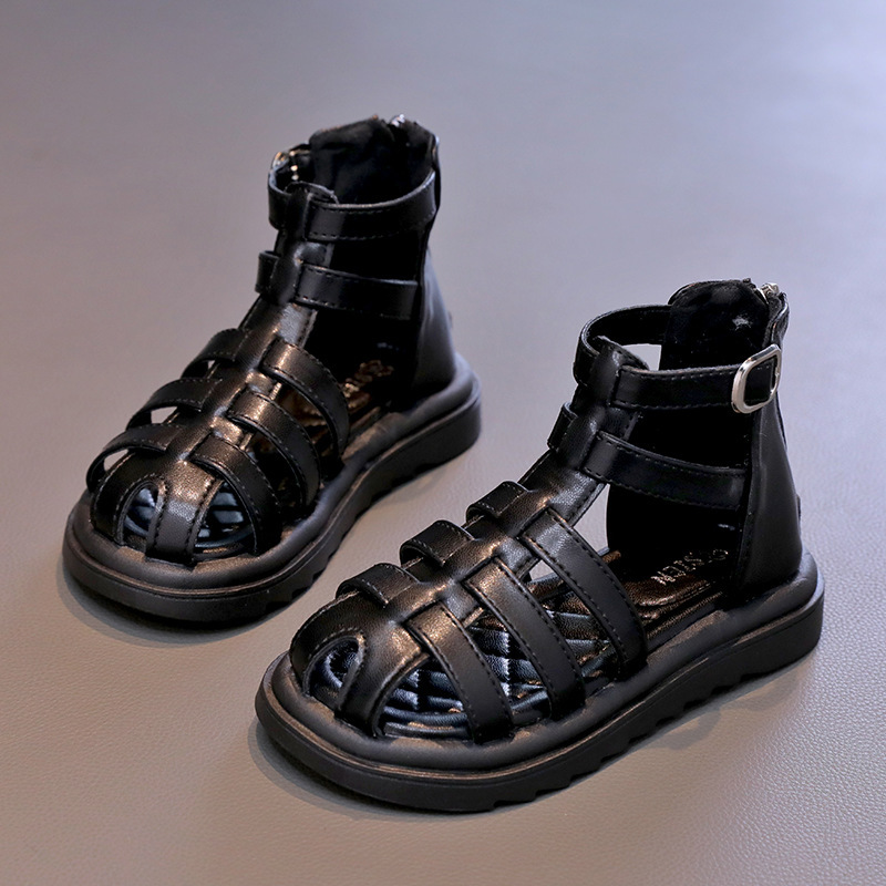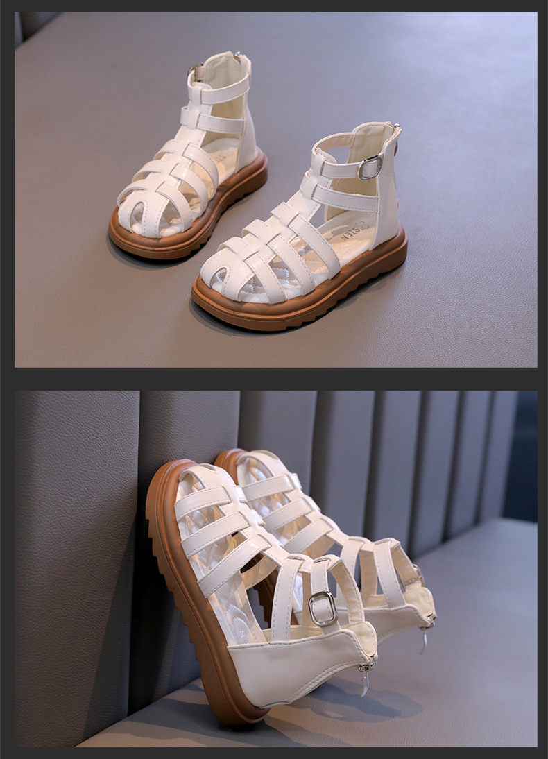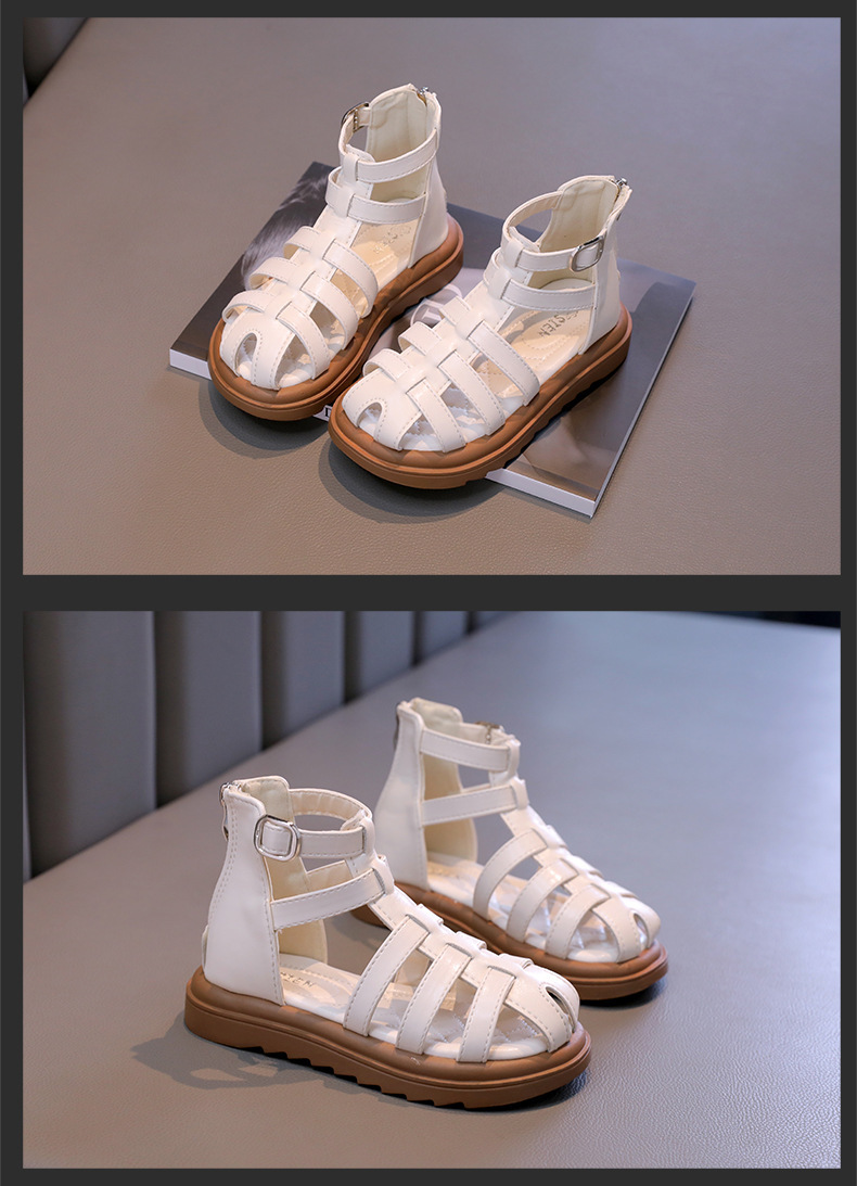 어린이 샌들 2024 여름 새 소년 소녀 속이 빈 통기성 로마 신발 중대형 어린이 패션 백 지퍼 단층 신발