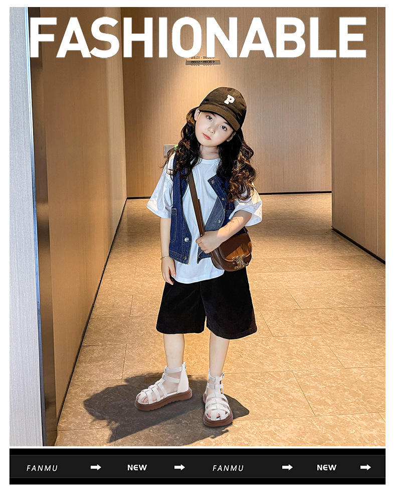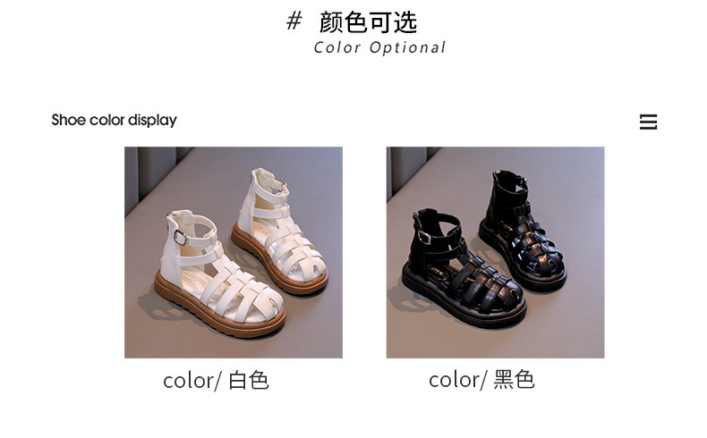 어린이 샌들 2024 여름 새 소년 소녀 속이 빈 통기성 로마 신발 중대형 어린이 패션 백 지퍼 단층 신발스토어 가기