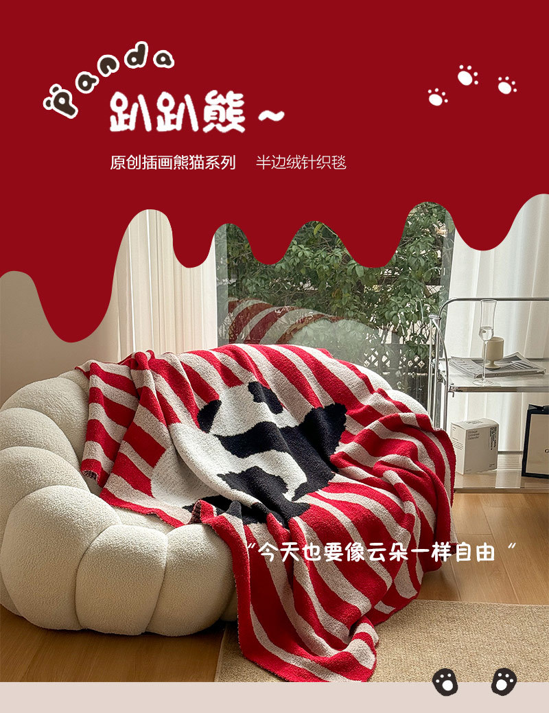 귀여운 일러스트 스타일의 배색 팬더 니트 담요, 두꺼운 반양털 담요, 겨울 침대용 담요스토어 가기