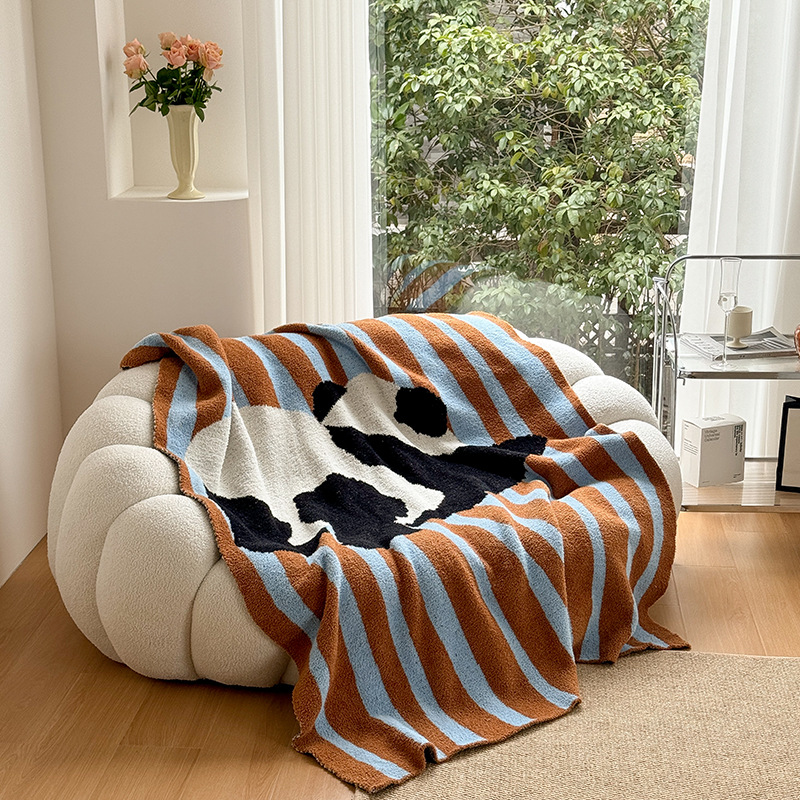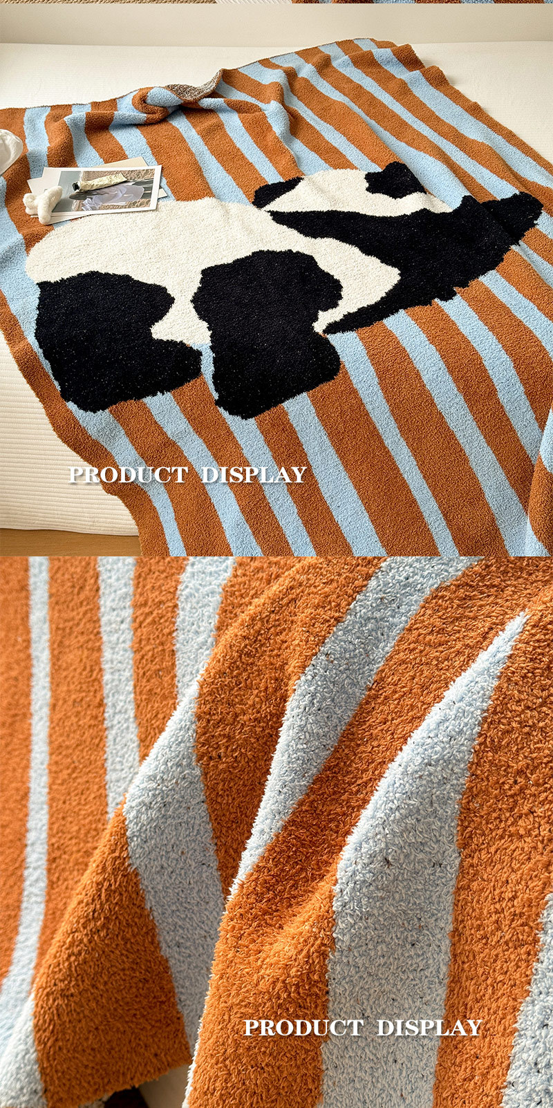 귀여운 일러스트 스타일의 배색 팬더 니트 담요, 두꺼운 반양털 담요, 겨울 침대용 담요