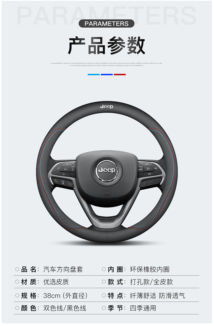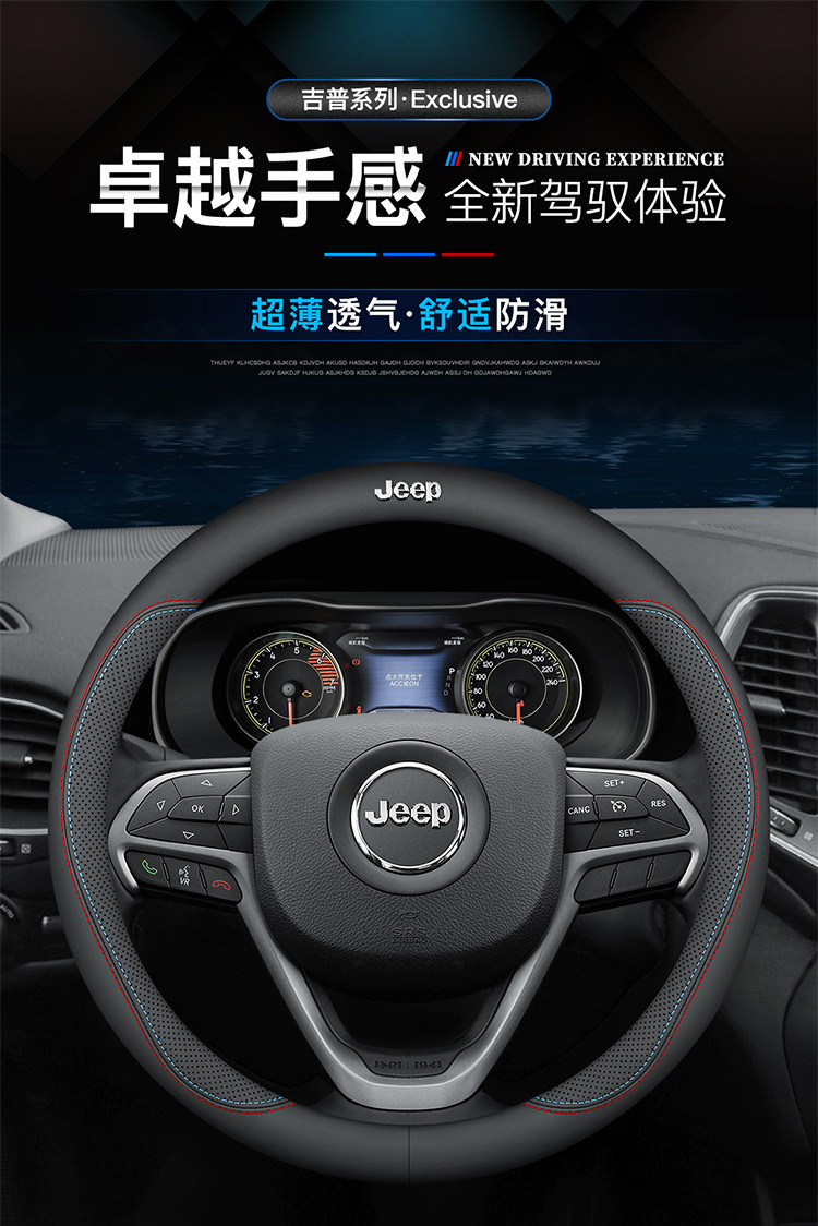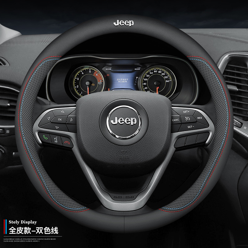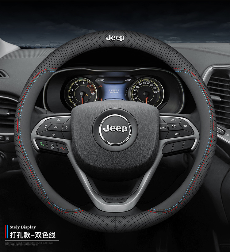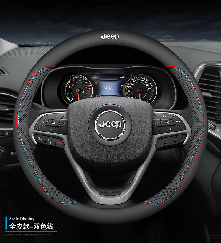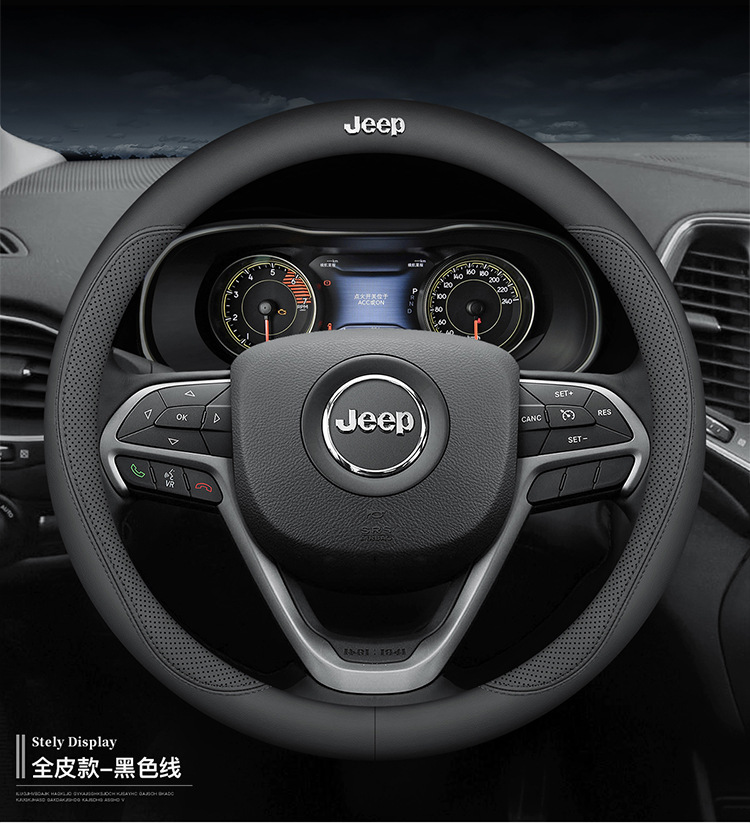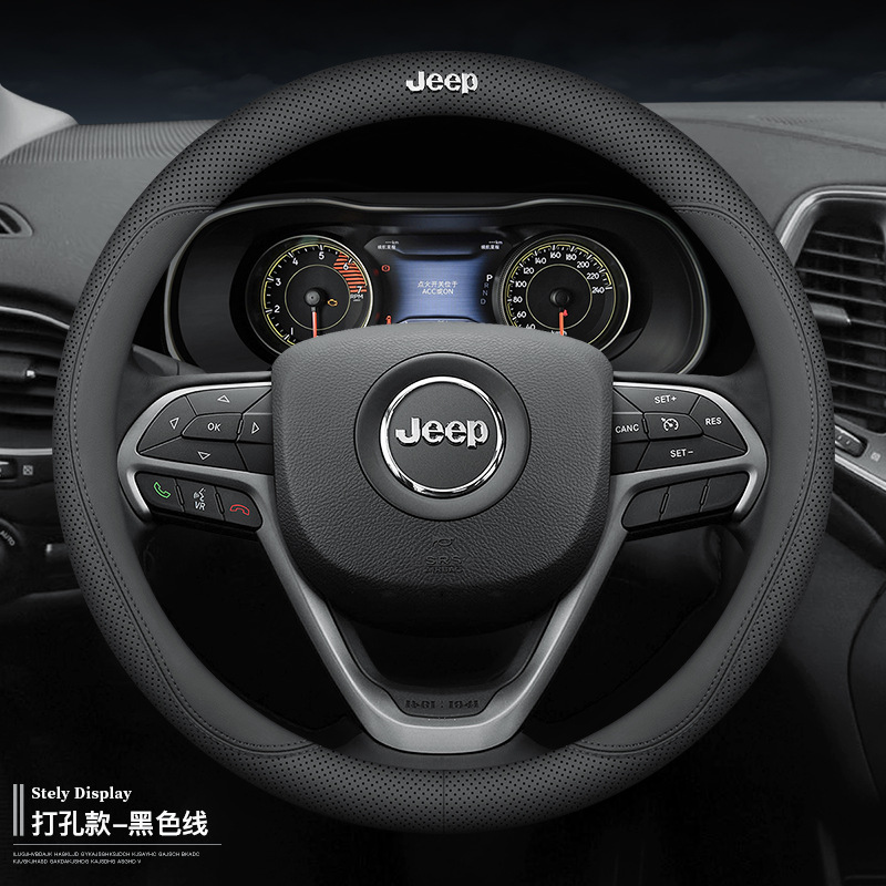지프 스티어링 휠 커버 지프 프리 라이트 랭글러 사령관 가이드 가죽 자동차 핸들 커버 전용스토어 가기