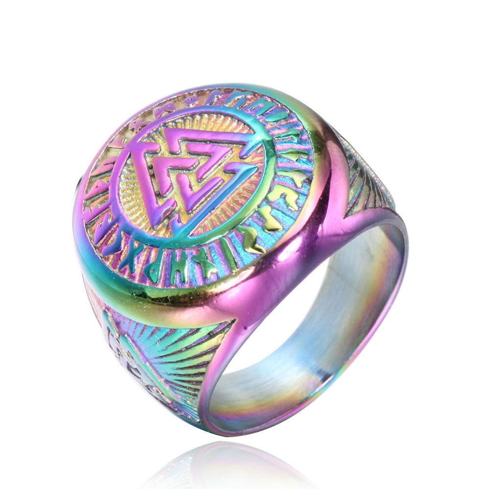 남성을위한 새로운 패션 펑크 레트로 골드 실버 스테인레스 스틸 바이킹 링스토어 가기