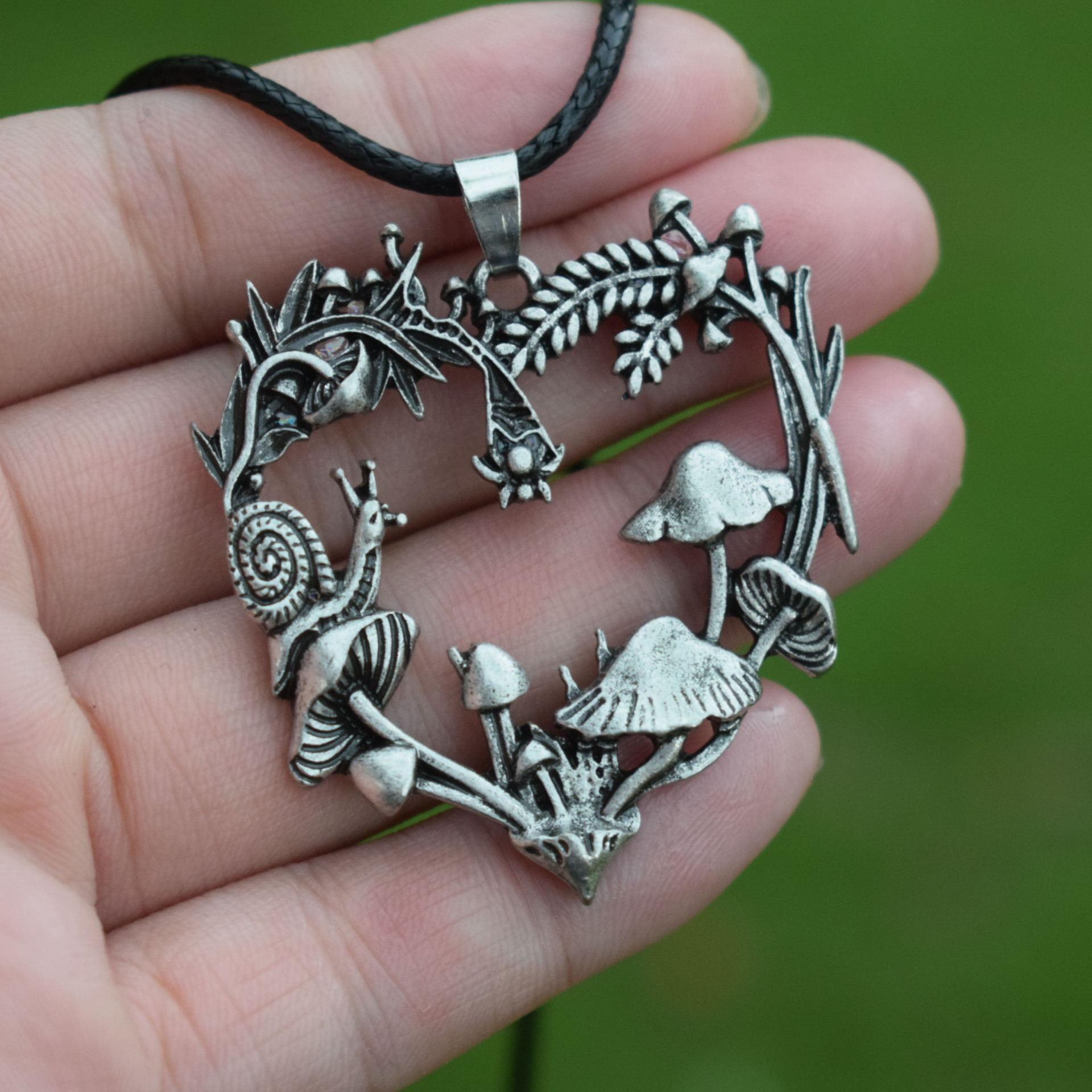자연 영감을 아름다운, 재미, 창조적 인 심장 달팽이 버섯 목걸이